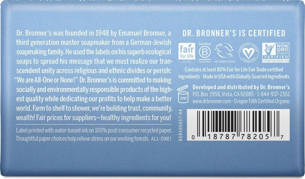 Welcome to our eBay Shop 1 Add to favorite 2 Contact us Dr. Bronner's Pure-Castile Bar Soap a Baby Unscented a 5 oz - Adults, Children, Babies (2 PACK) Trusted Seller we have a proven track record over the years. we have 1000s of satisfied customers all over the world. 100% Positive Feedback We have 100% postive feedback score on our eBay profile. 24 Hour Dispatch We dispatch orders every working day at 3 PM. So all the orders received will be dispatched within 24 hours. Fast & Free Delivery We use UPS and royalmail first class to post items to buyers. so that buyer can receive items quickly and on time. Item Description Dr. Bronner's Baby-Unscented Bar Soap. With no added fragrance and double the olive oil, our Baby Unscented Pure-Castile Bar Soap is good for sensitive skin babies too (though not tear-free!). Dr. Bronner's Bar Soap is made with certified fair trade ingredients and organic hemp oil for a soft, smooth lather that won't dry your skin. 100% biodegradable in a 100% post-consumer recycled wrapper. - MOISTURIZING LATHER THAT WON'T DRY YOUR FACE, BODY, OR HAIR: Our bar soaps produce a rich lather that won't dry out your skin! Dr. Bronner's is made with only the purest certified organic oils and will leave your skin feeling soft and smooth - MADE WITH ORGANIC OILS THAT ARE GENTLE and EFFECTIVE: We don't add any chelating agents, dyes, whiteners, or synthetic fragrances only all-natural, vegan ingredients that are gentle, effective and mild. Use it on your face, body, or hair! - NO SYNTHETIC PRESERVATIVES, DETERGENTS, OR FOAMING AGENTS: Our Pure-Castile Bar Soap is made with plant-based ingredients you can pronounce no synthetic preservatives, thickeners, or foaming agents good for the environment and great for your skin! - GOOD FOR YOUR BODY and THE PLANET: Dr. Bronner's bars soaps are fully biodegradable and use all-natural, vegan ingredients that pose no threat to the environment. Our products and ingredients are never tested on animals and are cruelty-free - PACKAGED IN 100% POST-CONSUMER RECYCLED WRAPPERS: Dr. Bronner is diverting discarded paper waste from landfills by using and increasing the demand for recycled materials. This prevents landfill buildup and has a positive environmental impact! Features Features: All Purpose, Eco-Friendly, Daily Use, Gentle Age Group: Adult, Child, Toddler, Teen Scent: Baby Mild Skin Type: All Assembled Product Weight: 0.33 lb Brand: Dr. Bronner's Gender: Unisex Is Vegan: Is Vegan Assembled Product Dimensions (L x W x H): 3.62 x 1.25 x 2.25 Inches About us Customer satisfaction is our highest priority! We encourage you to thoroughly read the items description to ensure it meets your needs before you make a purchase. If you have any questions, please feel free to reach out to us via eBay messages prior to ordering. We strive to provide accurate descriptions and images of our products, but please note that variations in color may occur due to lighting differences and monitor settings. All items are available at the time they are listed, but in the rare event that we cannot fulfill your order due to inventory issues, we will inform you promptly and issue a full refund. Thank you for choosing us for your shopping needs. We value your business! Payment Shipping We provide fast, free shipping. Most items are shipped within 1-3 business days of receiving cleared payment. We ship to the lower 48 contiguous United States only. We do not ship to P.O. Boxes or APOs. sometime we ship from multiple locations Returns We offer a 30 day return/exchange policy for most of our products. if the item was damaged or not as described Disclaimer Were sorry, but we do not honor product exchange requests. If you need to exchange an item received, you will need to go through the normal returns process identified in our returns section and then order the correct item, if it is still available. Orders are processed immediately and dispatched to fulfillment as soon as they are received. For this reason, we are typically unable to honor cancellation requests. If you need to cancel the transaction, please contact us as soon as possible and we will attempt to cancel the order. If the order has gone too far through the fulfillment process, we will be unable to cancel. In that event, you would need to wait until you receive the item and go through the normal returns process as mentioned in the returns section of our policies. Get in Touch If you have any question regarding our products. Feel free to contact us anytime using eBay messaging service. We will get back to you at our earliest. Copyright ©2023, All Rights Reserved. Listed by Sku Fetch