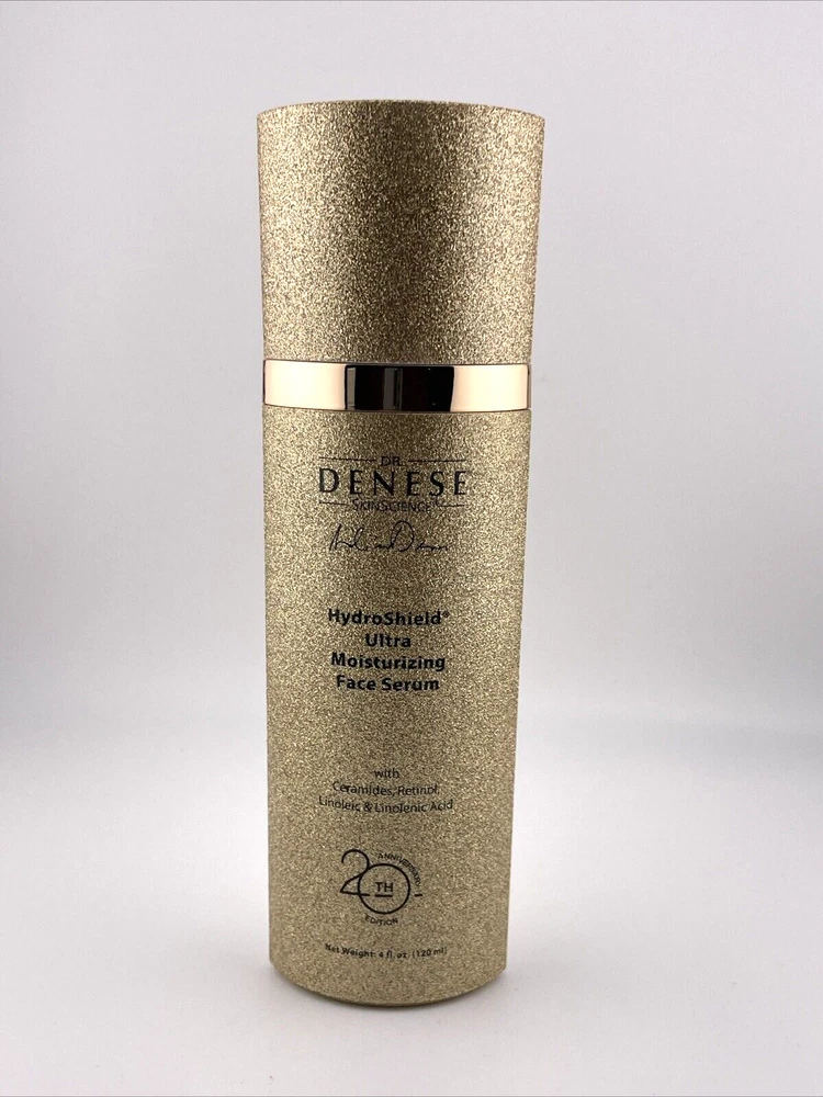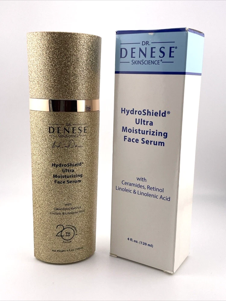 Dr. Denese HydroShield Ultra Moisturizing Face Serum Size : 4 fl oz / 118 ml Special Edition : 20th Anniversary Edition Condition : Brand New. Product Overview : Celebrate two decades of advanced skincare with the Dr. Denese HydroShield Ultra Moisturizing Face Serum 20th Anniversary Edition . This iconic serum is formulated to provide intense hydration while targeting the appearance of fine lines and wrinkles, leaving your skin soft, smooth, and radiant. The HydroShield technology helps to restore the skin’s moisture barrier, offering long-lasting hydration that locks in moisture for a youthful glow. Key Features : Size : Large 4 fl oz / 118 ml, special 20th Anniversary edition. HydroShield Technology : Delivers a potent dose of hydration, helping to reduce the look of dry lines and wrinkles while maintaining skin’s moisture barrier. Advanced Formula : Rich in ceramides, retinol, and essential fatty acids to promote a firmer, smoother complexion. Anti-Aging Benefits : Targets visible signs of aging, including fine lines, wrinkles, and loss of elasticity. Lightweight, Silky Texture : Absorbs quickly into the skin, leaving it hydrated without feeling greasy. Clinically Proven : Proven to increase hydration levels in the skin and reduce visible aging signs, making skin appear plumper and more youthful. Anniversary Edition : This exclusive packaging celebrates 20 years of innovation and skincare excellence. How to Use : Apply morning and night on clean, dry skin. Dispense a few drops of the serum onto your fingertips. Gently massage into your face and neck, allowing it to fully absorb before applying your moisturizer or makeup. Ideal For : Those with dry or dehydrated skin looking for intense moisture. Individuals seeking to combat the signs of aging and improve skin texture. Anyone looking for a lightweight serum that delivers long-lasting hydration and anti-aging benefits.