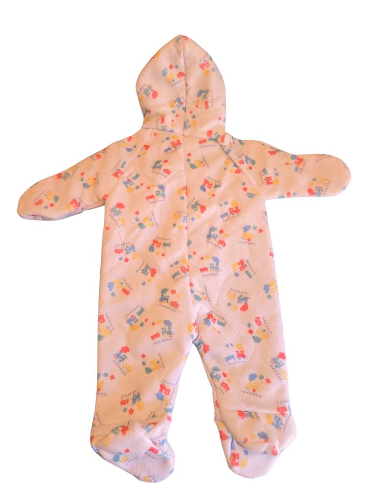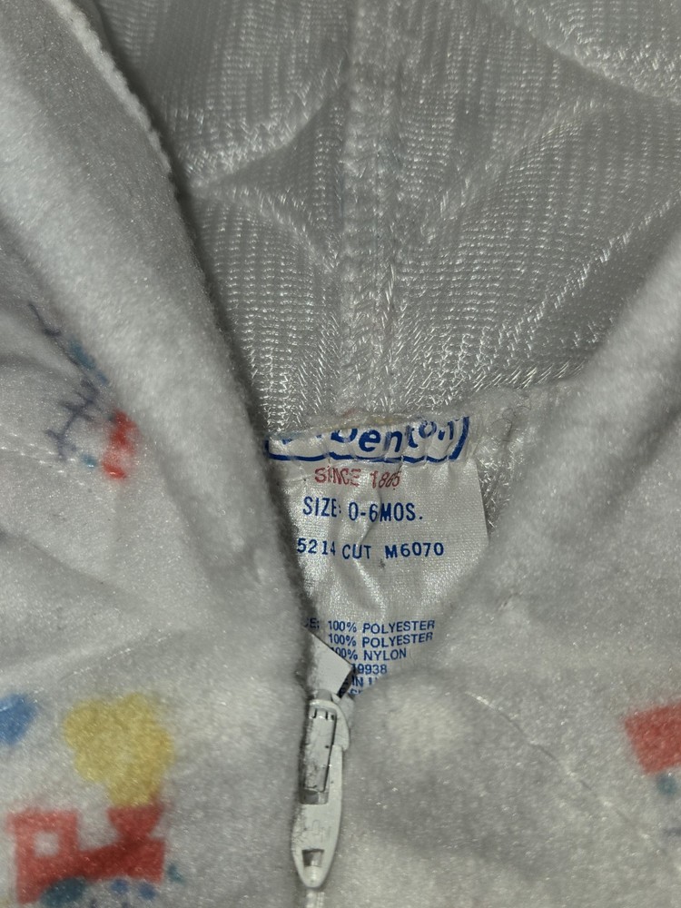 Delight your little one with the Dr. Denton Vintage Baby White Train Footed Pajamas, perfect for ages 0-6 months. Adorned with a charming train theme, this long-sleeve bodysuit is as adorable as it is cozy. It features a convenient zip closure for easy dressing, making nighttime changes a breeze. Crafted from a soft blend of 100% Nylon and 100% Polyester, this multicolor sleepwear ensures comfort throughout the night. The garment is machine washable, ensuring hassle-free care. Designed with love in the United States, this unisex pajama set is a sweet addition to any baby's wardrobe.