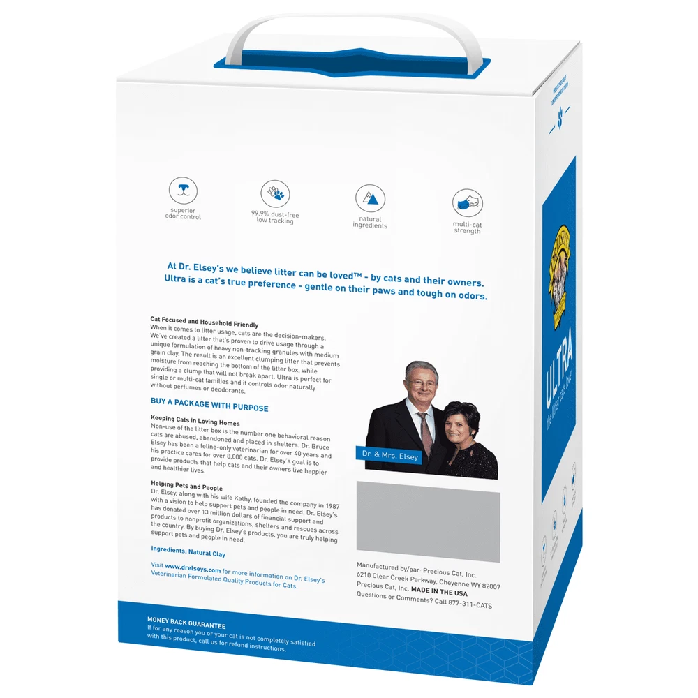 Dr. Elsey's Precious Cat Ultra Unscented Clumping Clay Cat Litter, 20 lb. Box Hard Clumping, Easy Scooping Formula. Low tracking and 99.9% dust free. Unscented formula with natural ingredients and superior odor control. Superior Odor Control For Multi-Cat Homes. Unscented & 100% Natural. Discover more fantastic items by visiting our eBay store! Thank you for choosing to shop with us. We appreciate your support!