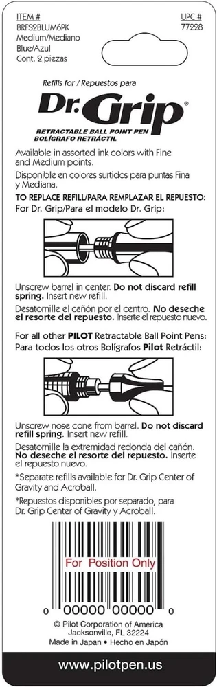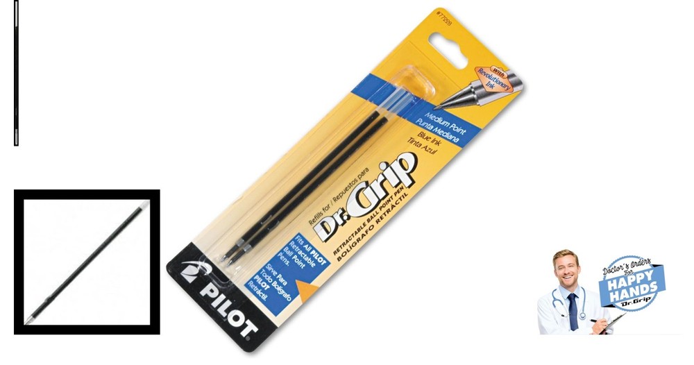 Dr. Grip Ballpoint Ink Refills Medium Point 2-Pack - Effortless Blue Writing ‹ › ‹ › ‹ › ‹ › ‹ › ‹ › ‹ › Dr. Grip Ballpoint Ink Refills Medium Point 2-Pack - Effortless Blue Writing Pack includes 2 high-quality ballpoint pen ink refills in a smooth, vibrant blue. Extend the life of your cherished retractable pen with these perfect refills. Revolutionary ink formulation ensures effortless writing experience. Designed to fit seamlessly in Dr. Grip, Dr. Grip Center Of Gravity, Dr. Grip Neon, EasyTouch Retractable, The Better Retractable, and RexGrip BeGreen Retractable pens. Why Choose Dr. Grip Ballpoint Ink Refills? Embrace the art of writing with confidence and comfort. This 2-pack of medium point ink refills transforms your writing experience with smooth and fluid strokes, making every note, signature, or sketch an enjoyable task. Whether you’re a professional, a student, or simply someone who appreciates the pleasure of writing by hand, our ink refills are designed for you. Effortless Writing: Experience the joy of ink that glides across paper without drag, creating fluid lines with ease. Compatibility: Perfectly designed to work with a variety of ’s most beloved retractable pens, ensuring that you never miss a beat when inspiration strikes. Exceptional Quality: Trust in ’s commitment to excellence in the design and functionality of writing instruments that elevate your writing style. Elevate Your Writing Today! Don’t let an empty pen stand in the way of your creativity and expression. Elevate your writing journey with Dr. Grip Ballpoint Ink Refills – where sublime writing meets quality. Stock up now and ensure your favorite writing tools are always ready to shine! Shipping Free & Fast Shipping - We offer free shipping to most of the USA with a normal delivery time of 3-7 days. However, due to the current situation, additional delivery time (up to 3 weeks) may be required for some items. Alternative Carriers - We may use alternative carriers (e.g. USPS, FedEx, UPS, etc.) to ensure your package arrives safely and on time. Due to the use of multiple carriers, we are unable to provide a tracking number automatically. Handling Time - Orders are processed and shipped within 1-2 business days of receiving cleared payment. Shipping Restrictions - Shipping to Alaska, Hawaii, Puerto Rico, Guam, and other US territories may incur shipping charges or delivery restrictions. Please contact us before ordering, or your order can be refunded/cancelled. State Restrictions - There may be restrictions based on your state of purchase. For example, certain items may not be shipped to California due to state regulations. Contact for Tracking Updates - If you require tracking updates or have any concerns about the delivery of your order, please feel free to contact us, and we will be happy to assist you. Return 30-Day Hassle-Free Returns - We want you to be completely satisfied with your purchase. If you are not, you can return the item within 30 days of receiving it for a full refund or exchange. Easy Return Process - To start a return, simply contact us and we will provide you with a prepaid return shipping label and detailed instructions. Restocking Fee - There are no restocking fees for returns. However, the buyer is responsible for return shipping costs if the return is not due to a seller's error. Refund Processing Time - Refunds will be processed within 5 business days of receiving the returned item in its condition. Payment We accept all major credit cards, PayPal, and Apple Pay for your convenience. Your payment information is secure and encrypted to ensure a safe and seamless transaction. Please complete your payment within 3 days of purchase to avoid any delays in shipping. Feedback Your feedback is extremely important to us. We strive to provide the best products and customer service possible. If you are satisfied with your purchase, please take a moment to leave us a positive review. If you have any concerns or issues with your order, please contact us before leaving negative feedback. We are committed to resolving any problems and ensuring your satisfaction. Contact Us If you have any questions or concerns, please feel free to out to our customer support team. You can contact us through the eBay messaging system. We are available Monday to Friday, 9:00 am to 5:00 pm EST, and we will do our best to respond to your inquiry within 24 hours. Buy it now and enjoy a pleasant shopping experience! Features: Ballpoint,Retractable,Medium Point,Revolutionary ink that is easy to write with Material: Plastic Ink Color: Blue