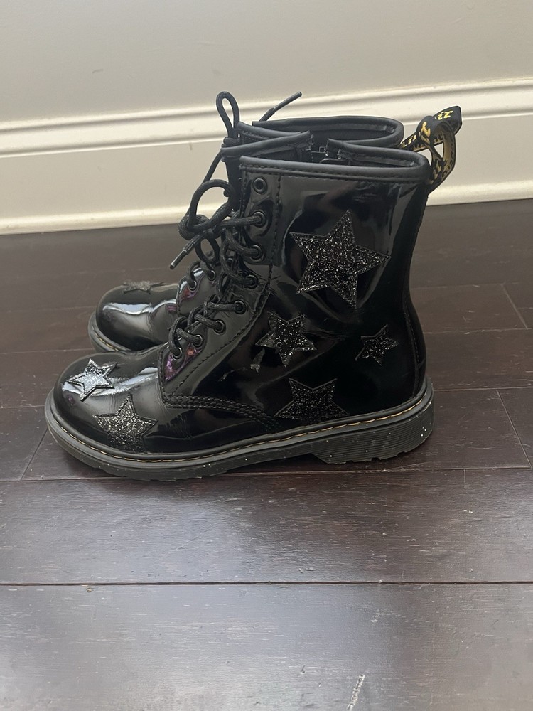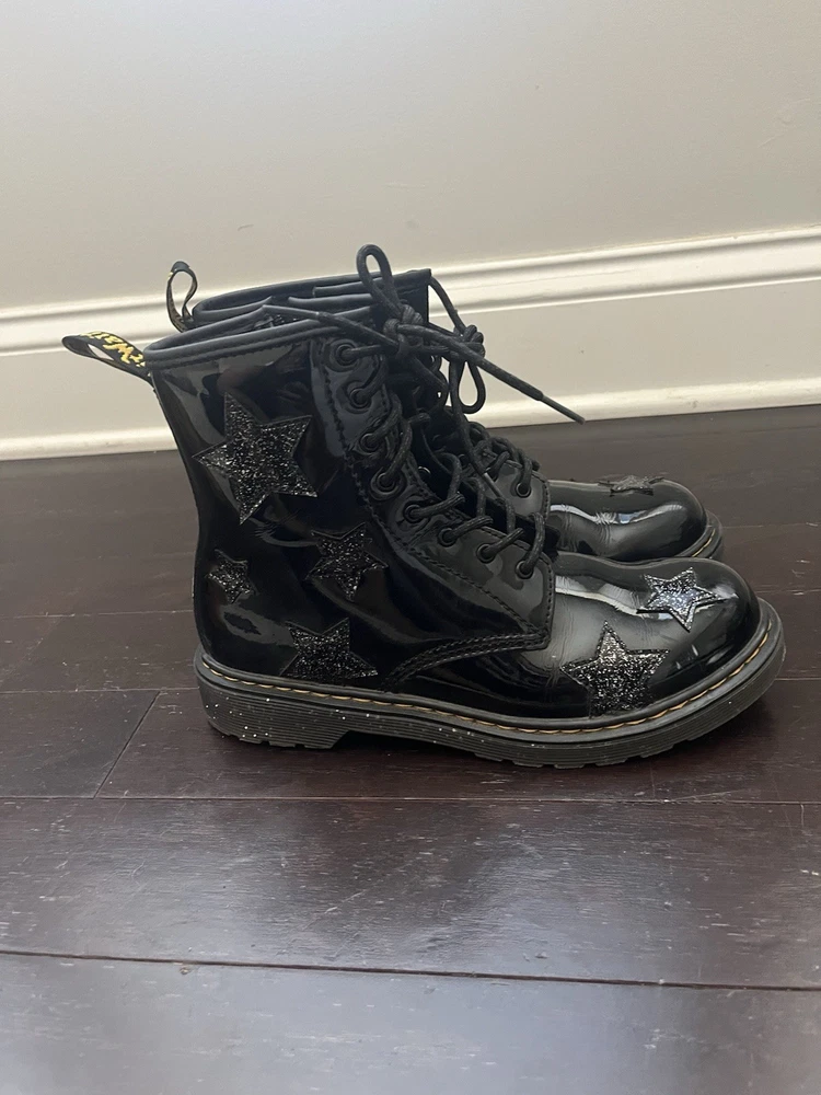 Cleat Type: Rubber Handmade: No Shoe Width: M Vintage: No Closure: Lace Up Season: Winter, Spring, Fall Model: Dr. Martens 1460 Product Line: Dr. Martens 1460 Outsole Material: Rubber Heel Height: Low (1-1.9 in) Department: Unisex Kids Brand: Dr. Martens US Shoe Size: 6M Toe Shape: Round Toe Theme: Stars Type: Boot Upper Material: Patent Leather Color: Black Character: Boots Pattern: Solid Style: Combat Occasion: Casual