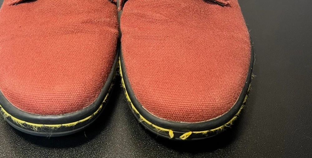 The thread on the toe is coming undone as seen in the photos. No original box included. Elevate your shoe game with these stylish Dr. Martens Maelly ankle boots. The burgundy canvas upper material and lace-up closure provide a comfortable and secure fit, while the round toe shape adds a touch of sophistication. These boots are perfect for any occasion, from parties and cocktails to casual and formal events. The Dr. Martens Maelly boots feature a solid pattern and a hipster, rock, and punk theme, making them a great addition to any wardrobe. The rubber outsole and canvas lining material ensure durability and comfort, while the ankle shaft style adds a touch of edginess. These boots are available in UK shoe size 5, US shoe size 7, and EU shoe size 38.