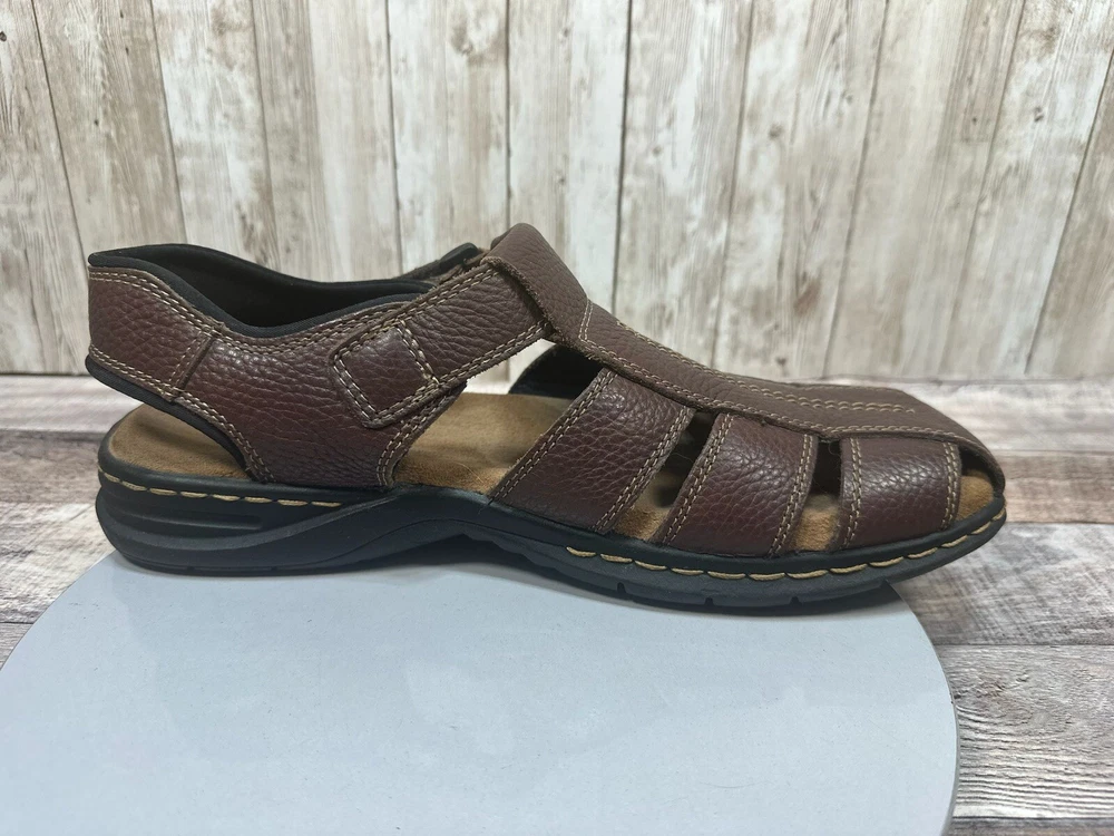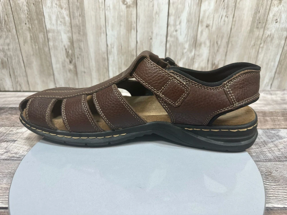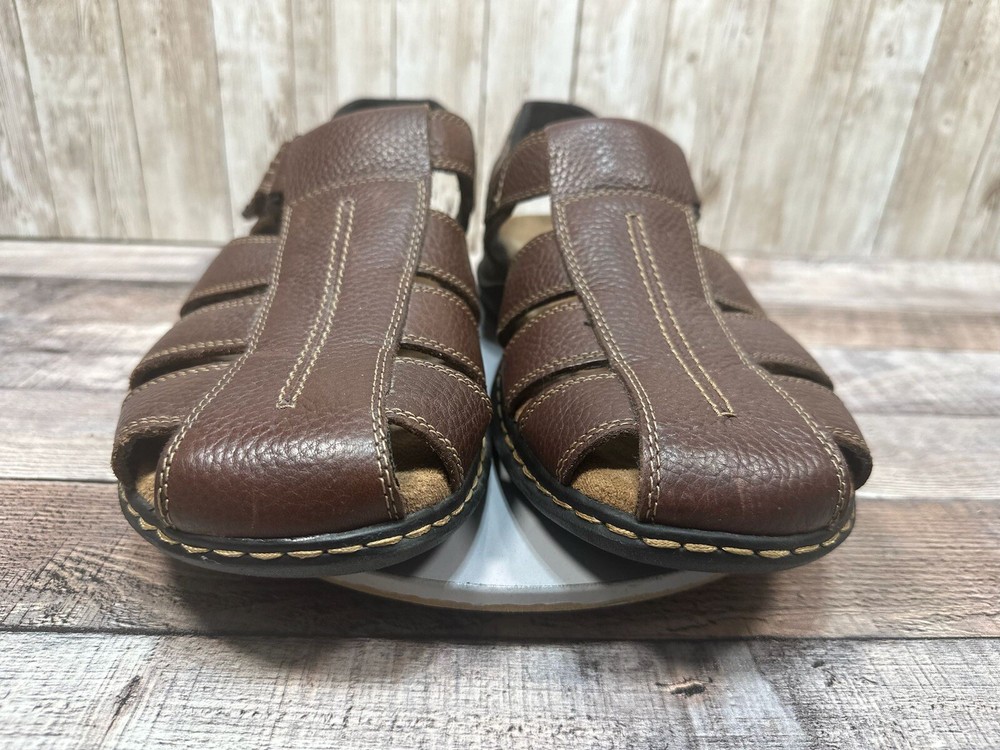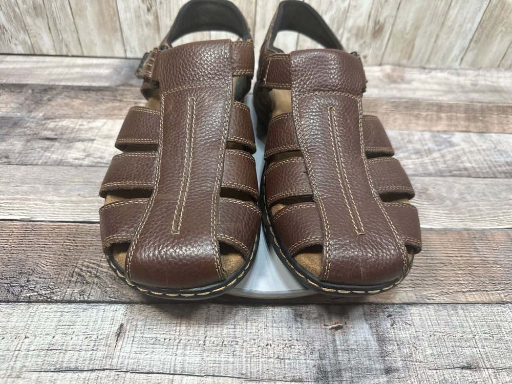 The Dr. Scholl's Gaston Men's Brown Leather Sandals offer a comfortable fit with memory foam insoles, making them perfect for casual occasions during the summer and spring seasons. Very good condition. Please check all the pictures.