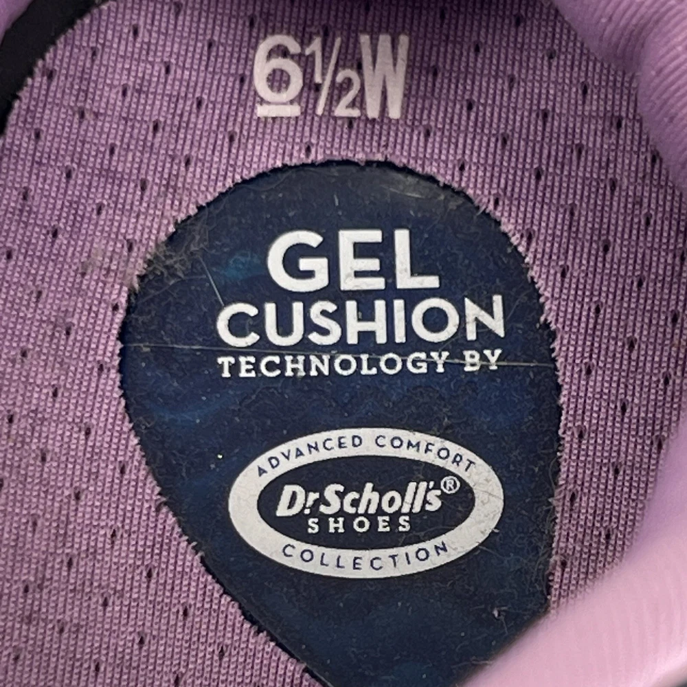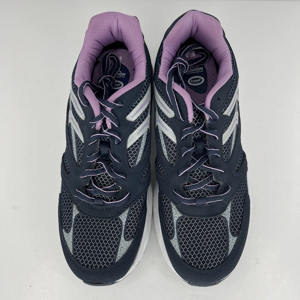 Elevate your activewear or casual look with these stylish navy and violet Dr. Scholl's sneakers . The low-top, lace-up shoe features a leather and mesh upper, with a geometric pattern that adds a unique touch to the design. The gel cushion insole provides comfortable support for walking, running, or jogging, making them the perfect choice for any season. These sneakers are perfect for women who want to stay on-trend while enjoying comfort and practicality. The rubber outsole ensures durability, while the fabric lining keeps feet cool and dry. The Dr. Scholls Gel Cushion Shoes product line is known for its quality and style and these shoes are no exception. Don't miss your chance to add a touch of violet to your shoe collection today. 100% CUSTOMER SATISFACTION IS OUR GOAL! Our items are always carefully examined for condition, measured if necessary, and photographed in a climate controlled and smoke-free environment. We make every attempt to accurately describe and clearly picture the items we have for sale. Please, ALWAYS view all of the photos. We value your business and our goal is your complete satisfaction. FAST SHIPPING All items are packaged with care and shipped out the same or next business day via USPS, FEDEX, or UPS with tracking numbers so you are always informed. RETURNS We offer a 30-day return policy. All items must be unused and unopened in the condition in which they were received, with original packaging, and all accessories included for return. REVIEWS - CUSTOMER SATISFACTION - COMMUNICATION We aim to make you happy. After you receive your shipment, please leave a positive review . If you have concerns or questions about your order, please contact us so we can resolve the issue. We will do our best to make you satisfied. THANK YOU FOR YOUR BUSINESS!