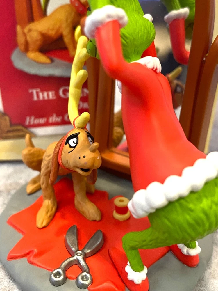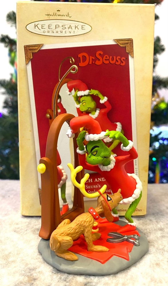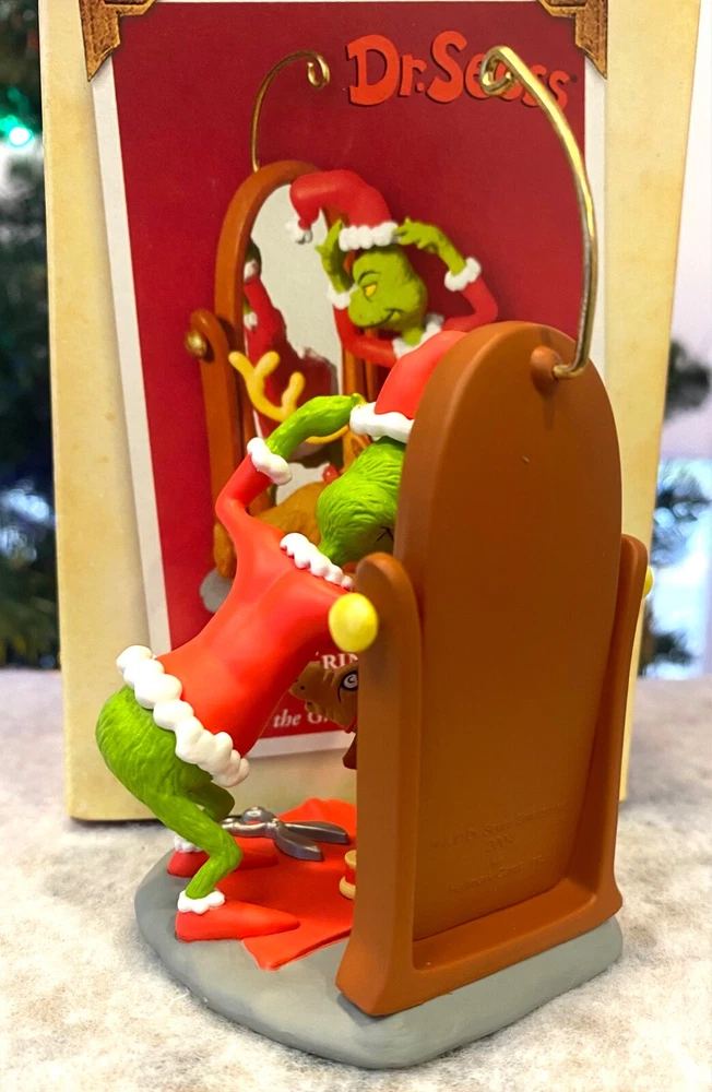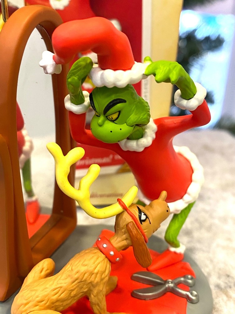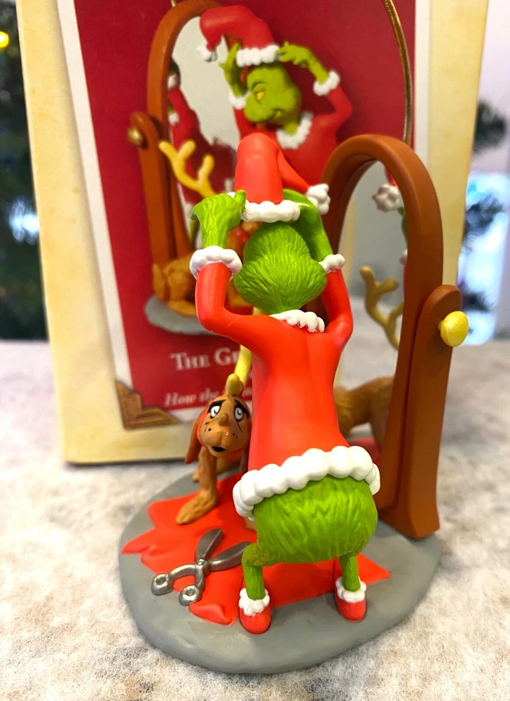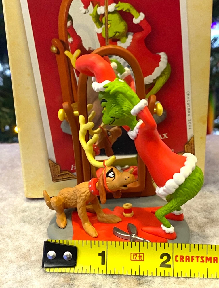 Celebrate the festive spirit with the Hallmark Keepsake "The Grinch and Max" Christmas ornament, inspired by the beloved Dr. Seuss classic file, How the Grinch Stole Christmas. Crafted from durable plastic resin, this medium-sized, red and green adorned piece brings the whimsy of Whoville to your holiday decor. Featuring the iconic Grinch and his loyal companion Max, this ornament is a charming addition to any Christmas collection. Designed to delight, this artistically crafted hanging decoration stands 4 inches tall and is styled to capture the essence of the cherished story. Whether it's the centerpiece of your tree or a fun accent on a holiday display, this Grinch ornament, made in China, is sure to spark joy and holiday cheer in everyone who sees it. As this ornament is used, it may contain minor imperfections, please check the photos carefully. Please see video.