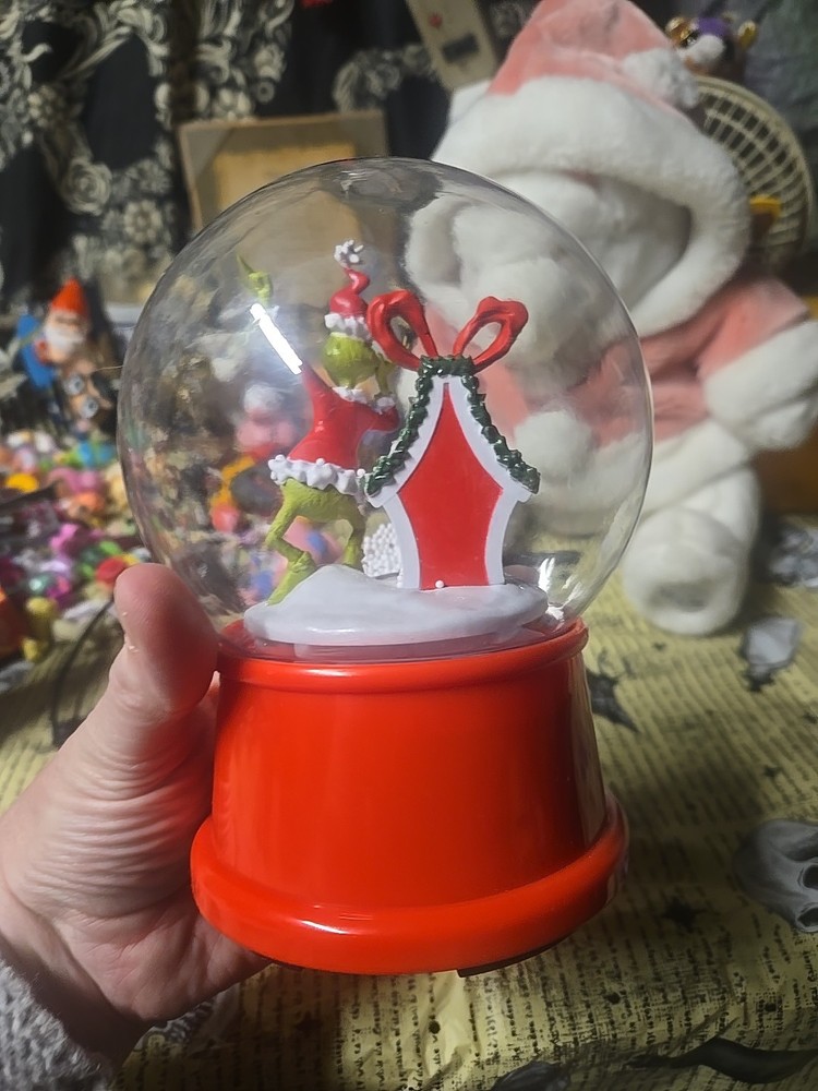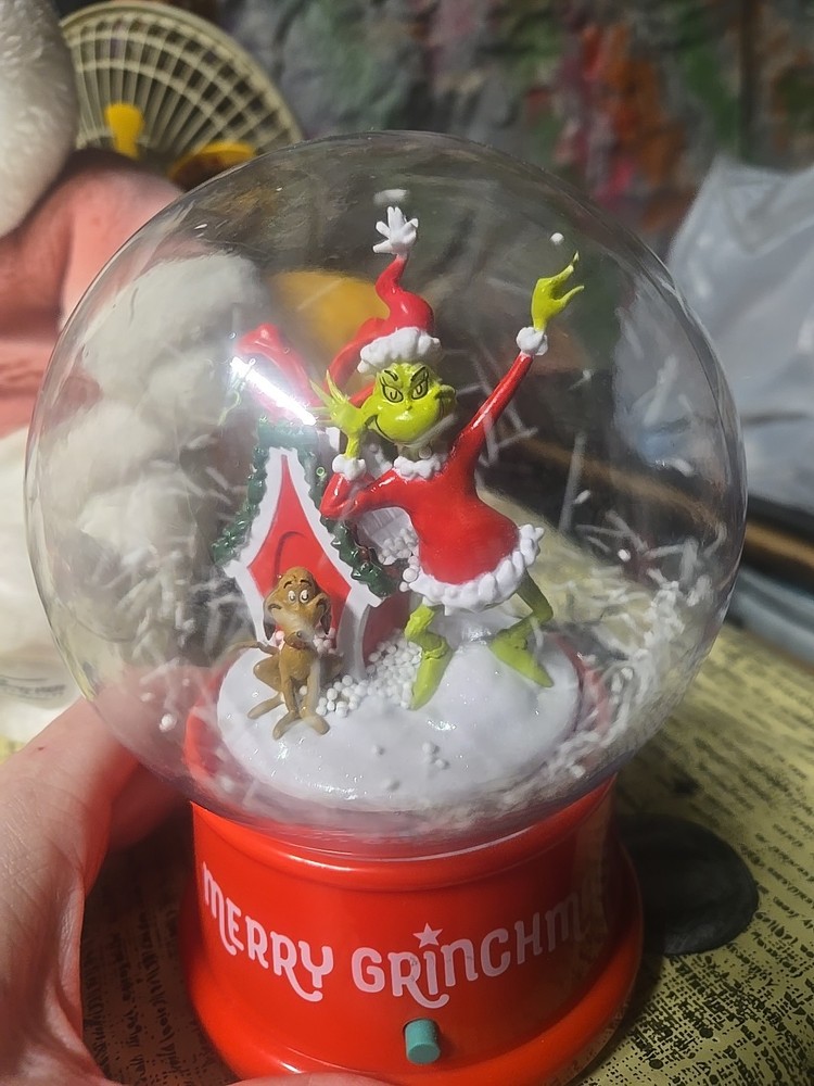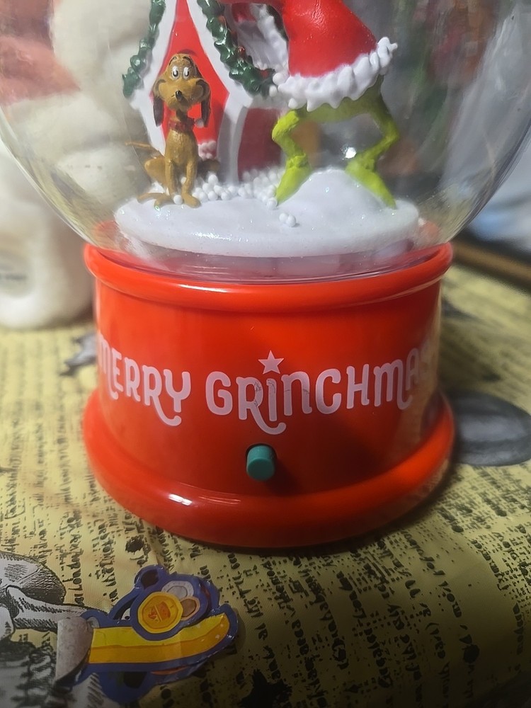 This Dr Seuss "Merry Grinchmas" LED and Music Blowing Snow Globe features characters Max and the Grinch, making it a perfect Christmas decoration for fans of the festive season and the beloved story. The snow globe is illuminated with LED lights, plays music, and produces blowing snow for a magical and immersive experience. Made of plastic and powered by AAA batteries, this traditional style snow globe is suitable for teens, adults, and kids alike, and adds a touch of whimsy to any room during the holiday season.