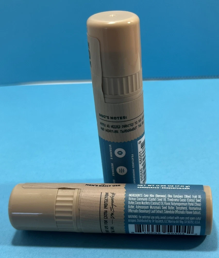 Dr. Squatch Moisturizing Lip Balm, Original Squatch, 0.25oz, Lot of 2.