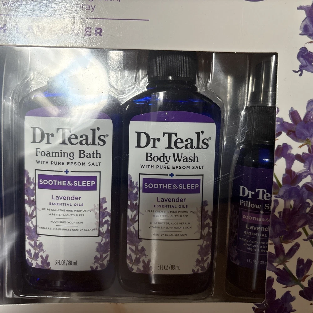 Suggested Age:13 Years and UpProduct Line:BODY LOTIONIncludes:Bubble Bath, Body Wash, Bath SaltsDepartment:UnisexType:Bath Accessories SetFeatures:Alcohol-FreeBrand:Dr. Teal'sBeauty Purpose:Moisturizing, Smoothing, Basic CleansingShape:NAOrigin:ImportedScent:LavenderFormulation:FoamSet Includes:LotionColor:PurpleSize:RegularUPC:810106610528Number of Pieces:4gtin13:810106610528Ingredients:SaltPattern:NOT APPLIEDProduct Warning:Keep out of reach of childrenMPN:Not Applied