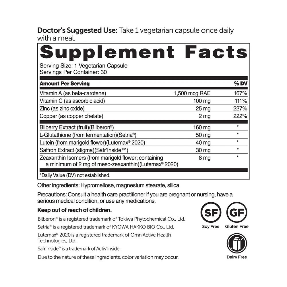 It’s no secret that we’re spending an excessive amount of time in front of our screens. Digital overload is real and getting worse. According to a recent report, in 2020 Americans spent an average of seven hours and 50 minutes per day consuming digital media. More than three hours of that time was on smartphones. The hard truth is that harmful blue light is just about everywhere these days. The result is an influx of eye problems like dry, itchy and fatigued eyes, among other concerns. Vision Essentials ULTRA addresses virtually all of these issues with just ONE vegetarian capsule a day. This exceptional formula provides substantial and broad support for vision and eye health. VISION ESSENTIALS ULTRA IS A ONE-OF-KIND FORMULA PACKED INTO JUST ONE VEGETARIAN CAPSULE, featuring three superstars to support macula and retina health, a safeguard against the negative effects of blue light exposure, and digital eye fatigue. THIS UNIQUE FORMULA ALSO ADDRESSES COMMON COMPLAINTS LIKE FATIGUED EYES, STRESS, occasional achy head, and sleep and mood issues. VISION ESSENTIALS ULTRA FEATURES INTENSELY RESEARCHED EYE HEALTH INGREDIENTS, using the best-of-the-best botanicals at researched levels, in their most ideally-concentrated forms. These include Lutemax 2020 lutein, Bilberon Bilberry Extract, and Safr’inside Saffron. THIS UNIQUE FORMULA ALSO INCLUDES PREMIER ANTIOXIDANT SETRIA GLUTATHIONE and vitamins A and C, plus Zinc and Copper—nutrients that are critical for vision and macula health. FORMULATED BY THE WHITAKER NUTRITION TEAM, BUILDING OFF Dr. Julian Whitaker’s vast experience helping people improve their quality of life.