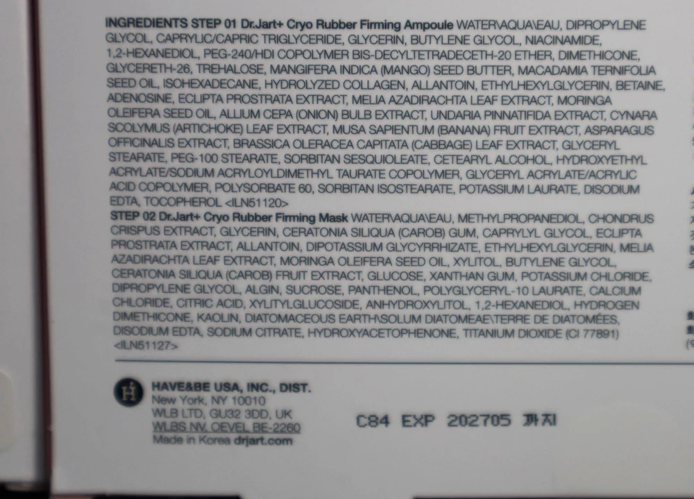 Dr.Jart+ Cryo Rubber Cooling Firming Mask *2 PACK* EX:05/2027 Brand New, Sealed! Includes two 2-Step mask sets