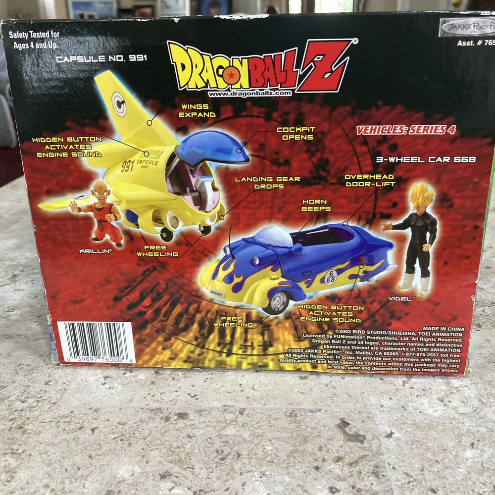 DRAGONBALL Z Capsule 991 ship…. NEVER OPENED…… awesome toy from 2003. Slight damage to box (pictured), ship and figure never played with. Great price for an excellent and rare item!