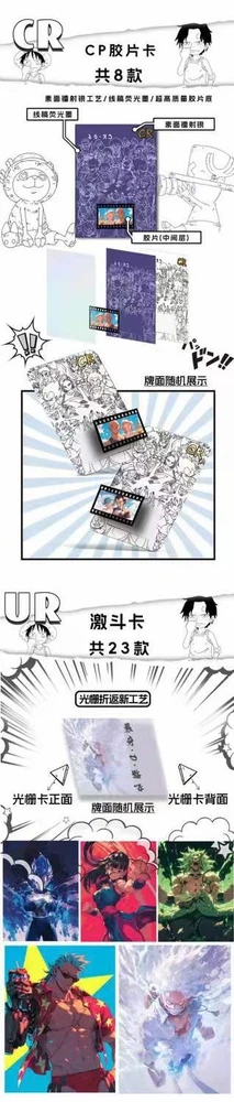 "Heyka Creative" One Piece × Dragon Ball [Interlaced Era] series of collectible cards are coming! Estimated July 26-July 28, 2024 ---------------------------------- Product specifications: 36 boxes/carton, 12 regular bags + 1 European bag 2 pieces/pack for regular package, 1 piece/pack for European package reward One Piece/Dragon Ball Japanese Edition Complete Set of Collectible Comics 20 Boxes 1 40-50cm figure, 1 box of ten Bandai Figure 2 boxes 1 piece Diamond hidden card, 1 in 2 boxes POP MART blind box 1 box Fruit Gold Coin Cards 2 per box Acrylic large bricks 2 per box Card book 1 per box Shipping is combined automatically in the cart for all products calculated based on weight! You can find many set pics on my site faricle.shop (type as web address) Join my community: discord.gg/neechan-cards Find me there if you pull any redeems! Or reach out to me on any social, I am faricleb on tt, diskord, insta, x. Thanks for shopping! There are also collectible and redeemable rewards 1:1 first-class figure (can be discounted at 5999) Bandai genuine limited edition 1:60/1:48 Gundam (2500 discount available) Waiting for you to come and get it Product selling points: Chiseled gold metal card, ultra-high-definition embossed thick card, color processed fluorescent ink card, starlight film card, rolled edge fluorescent ink film card, raster card, starlight Q version card, double-sided puzzle matte card and many other craft collection cards 《嘿卡文创》航海王×七龙珠【交错的时代】系列收藏卡强势来袭! 预计2024年7月26日-7月28日 --------------------------------- 产品规格: 36盒/箱,12普包+1包欧包 普包2张/包,欧包1张/包 赏配 航海王/七龙珠日版全套收藏漫画 二十箱1个 40-50cm手办 十箱1个 万代手办 二箱1个 钻款隐藏卡 二箱1个 POP MART盲盒 一箱1个 果实金币卡 一箱2个 亚克力大砖 一箱2个 卡册 一箱1个 更有收集兑换式赏 1比1等身手办(可折5999) 万代正版限定款1:60/1:48高达(可折2500) 等你来拿 产品卖点: 錾金金属卡,超高清激凹厚卡,彩冲荧光墨卡,星光膜卡,滚边荧光墨胶片卡,光栅激斗卡,星光Q版卡,双面拼图磨砂卡 等众多工艺收藏卡