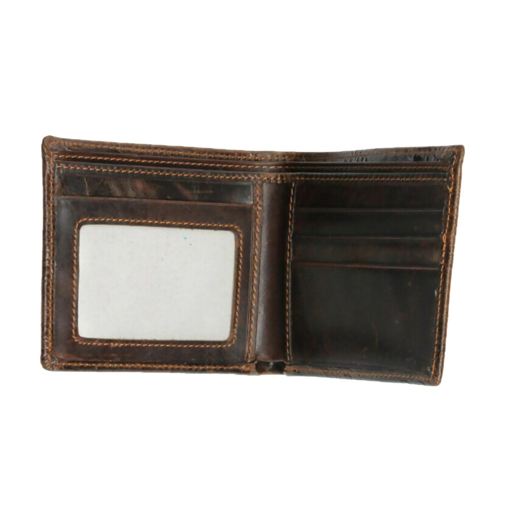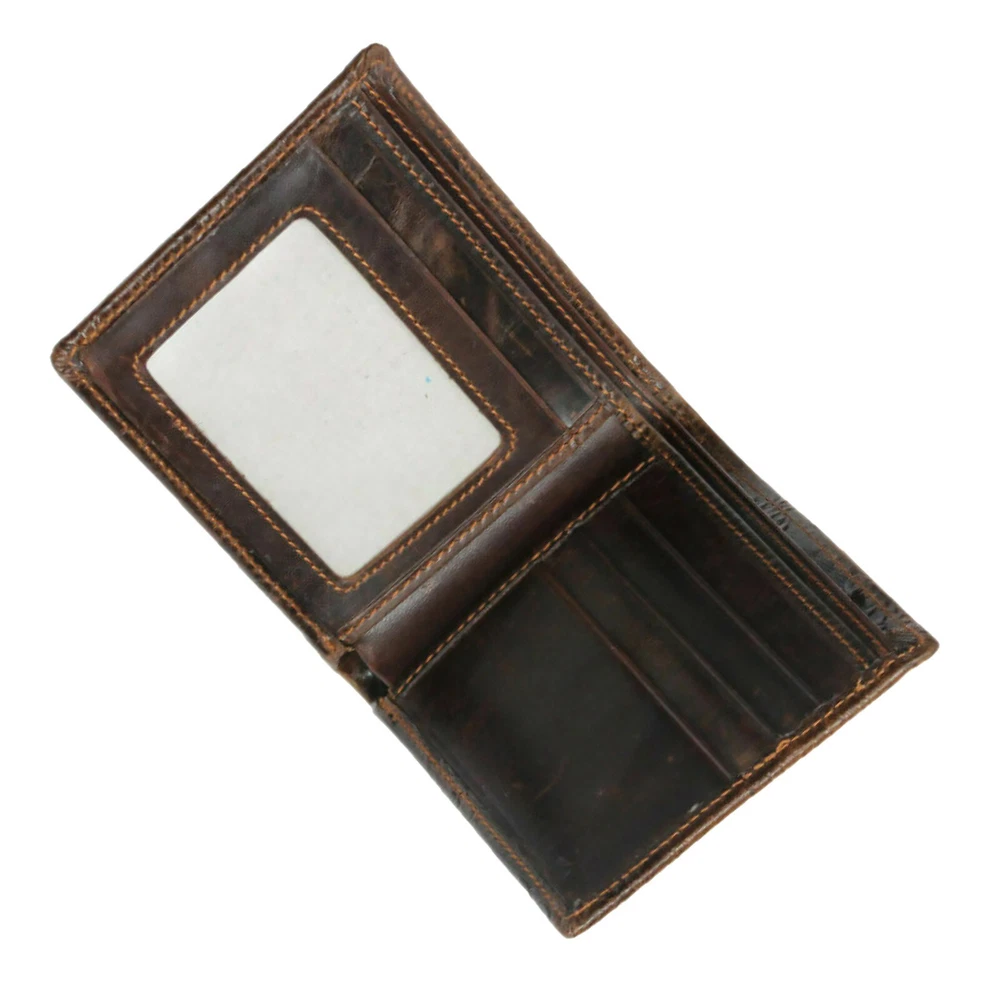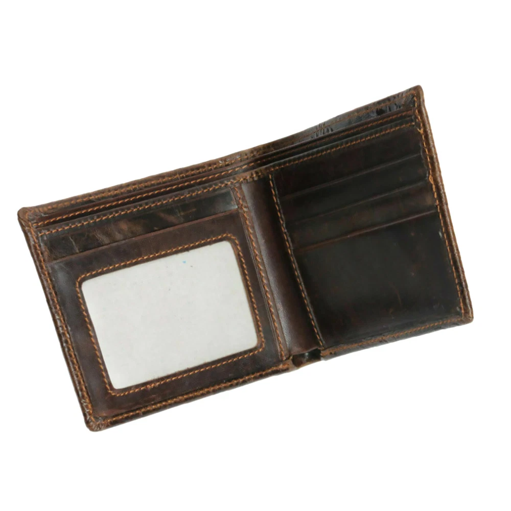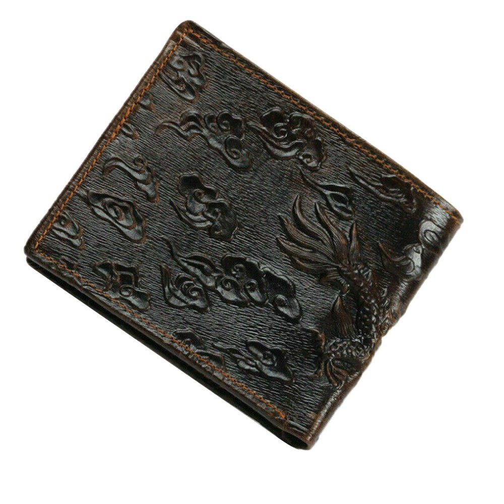 Dragon Brown Genuine Cowhide Leather Bifold Wallet for Men Travel Purse