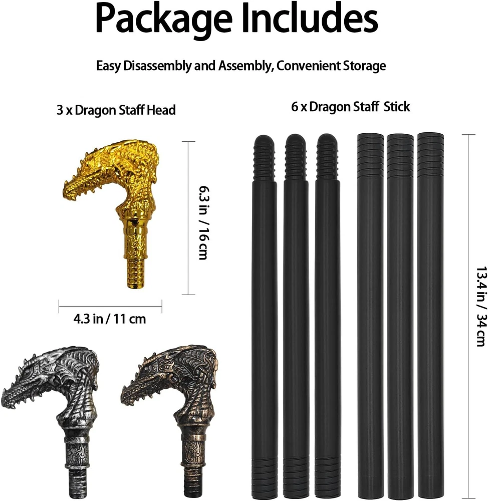 Dragon Staff Walking Stick Cane-Costume Medium, Gold,silver and Bronze Product Details Item Package Dimensions L x W x H: 15.07 x 6.14 x 2.52 inches Package Weight: 0.24 Kilograms Item Weight: 0.18 Kilograms Brand Name: Pemalin Model Name: 3pcs Dragon Scepter (Gold,Silver,Bronze) Color: Gold,silver and Bronze Dragon Material: Plastic Suggested Users: Unisex Number of Items: 3 Manufacturer: Pemalin Included Components: Scepter Size: Medium 【Dress-up Dragon Scepter】: This package includes 3 dragon scepter(1 gold, 1 silver, 1 bronze), Great for dressing up as queens, kings, wizards, witches and more. 【Idea Gift】: This dragon scepter perfect for Halloween decorations, costume parties, prend play, role-playing events and more, It 's a great gift to use for both kids and adults. 【Safe and Durable Materials】: Dragon scepter made of high-quality ABS material, light weight but strong and durable, the head of the dragon is bright gold, silver or bronze.(Tips: Walking stick is not made to support weight)