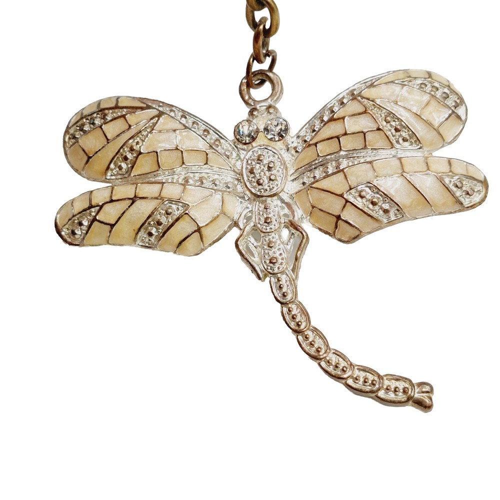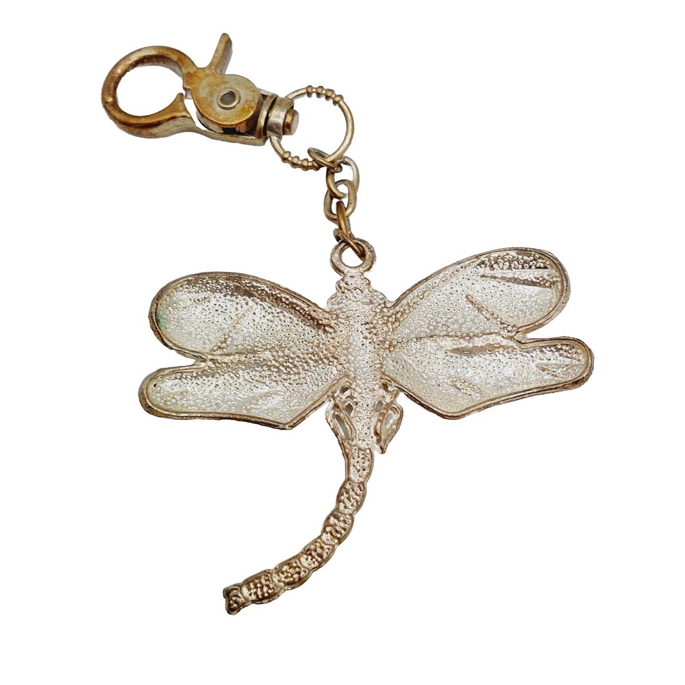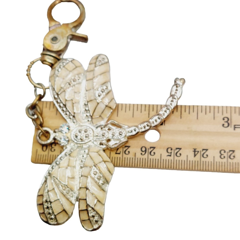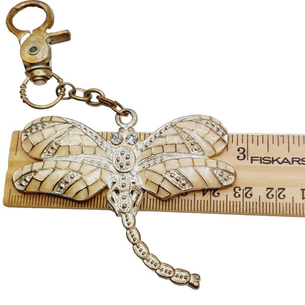 Dragonfly Keychain Crystals Metal Enamel Keyring Purse Clip Yellow Gold Tone