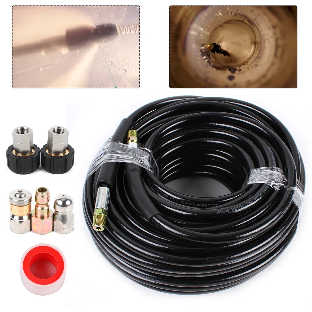 Description: ★The sewer spray hose is an excellent cleaning tool helper. It comes with 5 connection adapters, it is easy to connect to one another, and is widely used in indoor sewers, outdoor sewers, sinks, toilets, garages, ground drop pipes, etc. Drain Cleaner Hose Sewer Jetter Kit for Pressure Washer 100FT,1/4 " NPT 5800 PSI Sewer Line and Drain Jetter Kit 1/4" x 100' Hose with Sewer Nozzle & Adapters US Features&Highlights: Sewer spray hose: length: 100 feet, connection: 1/4” M-NPT, maximum working pressure: 40MPa (5800 PSI), temperature 60°C (140°F). Two connection adapters, two options: the sewer spray hose can be connected to the high-pressure cleaning pump with M22-14/M22-15 female head. It can also be connected to a high pressure washer trigger gun with a 1/4" quick disconnect plug. Button Nose Jetter Nozzle: A front nozzle with a spray angle of 0° can clear the blockage. The 3 rear nozzles with a spray angle of 33° can wash away loose debris from the front nozzle. (4.0 port) Rotating sewer nozzle: 3 times the backward rotating spray sprays into the blocked pipe, and moves the nozzle through the pipe. The nozzle slides into the drain and sewer. It provides uniform cleaning and flushing of debris (4.5 holes) Description: The sewer spray hose is an excellent cleaning tool helper. It comes with 5 connection adapters, it is easy to connect to one another, and is widely used in indoor sewers, outdoor sewers, sinks, toilets, garages, ground drop pipes, etc. Specifications: Sewer spray hose: Length: 100 feet Connection: 1/4”M-NPT Maximum working pressure: 40MPa (5800 PSI) The temperature is 60°C (140°F). Button nose sewer Jetter nozzle: Orifice: 4.0 1 front spray + 3 rear spray Material: Stainless steel Connection: 1/4" female threaded joint Rotating sewer nozzle: Orifice: 4.5 3 Rotate the spray backwards Material: Stainless steel Connection: 1/4" female threaded joint Weights&Dimensions: Packing size: 28.5x13.5x33cm Gross weight: 3KG Net weight: 2.5kg Package Included: 1 * 100 feet sewer spray hose 1 * Rotating sewer nozzle 1 * Button nasal sewer nozzle 1 * Coupler (internal thread M22 (inner diameter 14mm) to internal thread 1/4'' NPT) 1 * Coupler (internal thread M22 (inner diameter 15mm) to internal thread 1/4'' NPT) 1 * 1/4'' quick disconnect plug 1*sealing tape Payment Delivery details Terms of sales About us Contact us Payment We accept ebay payment 。 Fees such as import duties, taxes are not included in the item price or shipping costs. These charges are the buyer's responsibility. Delivery details Shipping: 2-9 working days to: USA Terms of sales We maintain high standards of excellence and strive for hundred percent customer satisfaction. Feedback is very important to us. We hope that you contact us immediately before you give neutral or negative feedback, so that we can address your concerns. It is impossible to address issues if we do not know about them! About us Your satis faction is our ultimate goal. We work hard to earn your trust and future business. Our certified technicians have tested each item before shipping. The unit comes with 1 year limited warranty on all manufacturing defects. a) If you receive a defective item, you may return it or ask for a discount. Please contact us within 14 days after you receive the package. b) What you returned must be intact and in its original packaging as re? u. Customer is responsible for shipping costs of the returned item. c) We will cover the cost of shipping back t with the shipping rate indicated in the registration page. We will send you a new unit or refund the full payment you paid. Thank you. Contact us Business Hour Business Hour: Monday To Friday: 8:30 AM to 5:00 PM (Beijing China time) Due to time zones, our reply to your questions may not be immediately. But within above working time, we will reply your email within 24 hours. If it's non-workdays, please kindly be patient and wait till Monday. Please contact us with ebay message. Please feel free to contact us if you have any questions. Monday To Friday: 8:30 AM to 5:00 PM (Beijing China time) Due to time zones, our reply to your questions may not be immediately. But within above working time, we will reply your email within 24 hours. If it's non-workdays, please kindly be patient and wait till Monday. Please contact us with ebay message. Please feel free to contact us if you have any questions. Shipping notice Can not ship to Puerto Rico/Alaska/Hawaii Type Hose Brand Unbranded Power Source N/A Maximum Pressure 5800PSI Features N/A Product Line N/A Model N/A Voltage N/A Horsepower N/A Engine Type N/A Assembly Required No Manufacturer Warranty Other: See Item Description Fuel Tank Capacity N/A Power N/A Soap Tank Capacity N/A Engine Size N/A Noise Level N/A MPN N/A Custom Bundle Yes Bundle Description N/A