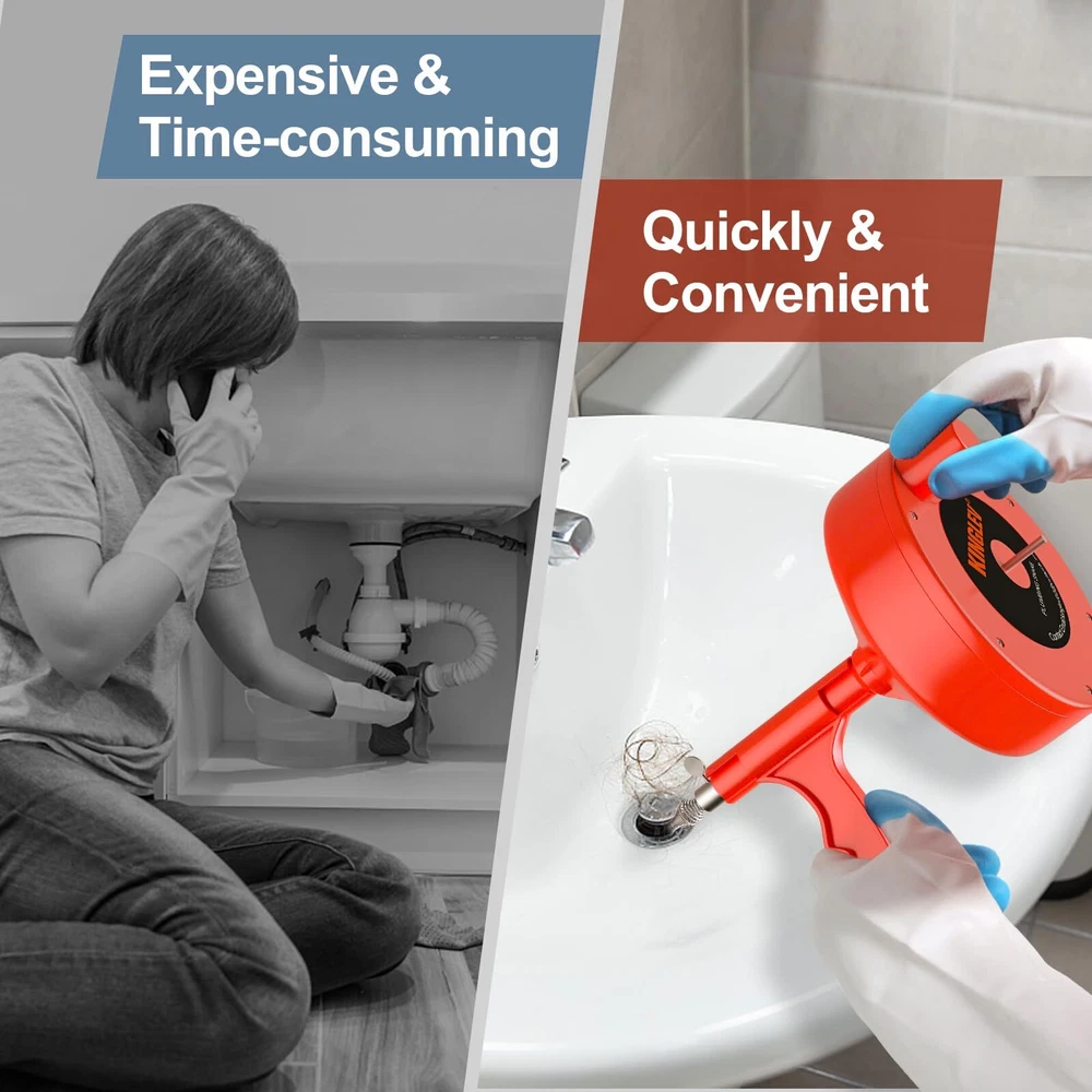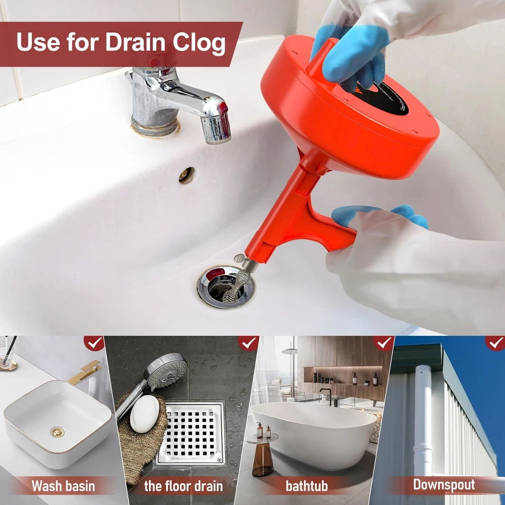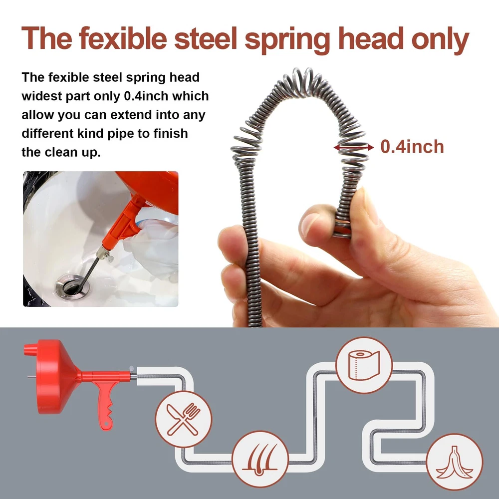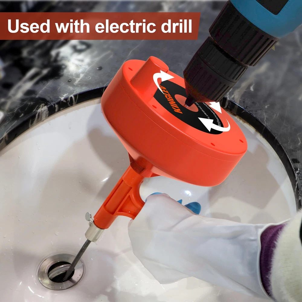 Precision-made sink snake tools, turning knob can firmly clamp the cable, and can be placed by shaking the wrist. The snake is bendable and flexible, it can help you solve the pipe clog problem better. Perfect household tool for quickly unclogging any drain, No matter driven by electric drill which attaches to the spindle, or driven by hand using the knob, Save money than calling plumber. This drain auger is professional using for various drains such as kitchen, bathroom, utility sinks, bathtubs, and shower drains. sewer and floor drains. 1/4" Dia. Steel Snake It is not recommended to use this drum auger to clear a toilet clog as the snake may damage the porcelain. The drain clog remover is made of high-impact ABS drum housing for long-lasting durability with grip handle for easy use. One for service next few years. Package included: household Gloves help to keep your hands clean and safe. and Drawstring Carrying Pouch to save your place to storage.