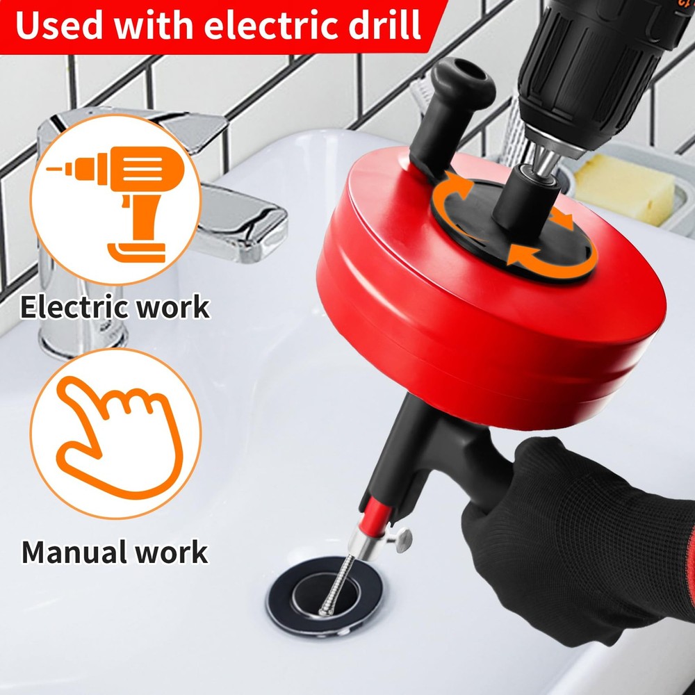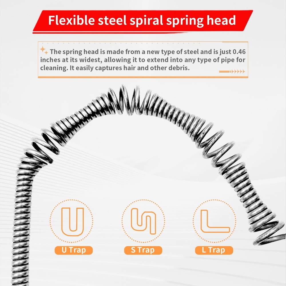 The drain snake, also known as the drain auger or plumbing snake, is an indispensable tool for anyone looking to clear stubborn clogs without the need for costly plumbing services. Whether you're using the drain snake for hair removal or clearing other debris, this tool ensures your pipes remain free of blockages, saving you time and money. The drain snake hair drain clog remover is designed to handle all types of clogs, making it a must-have for every household. One of the biggest advantages of the 35 ft drain snake is its cost-saving potential. Rather than paying for expensive plumber visits, the plumbing snake allows you to clear clogs yourself, saving you hundreds of dollars. The drain auger and snake drain hair removal tool are both user-friendly and highly effective, capable of clearing hair and debris from pipes without damaging the plumbing. The 35 ft drain snake gives you extra reach, allowing you to easily tackle deep or hard-to-reach blockages. Its auger drain snake design ensures smooth navigation through various pipe sizes, making it perfect for complex plumbing systems. Plus, the drain snake is built to be sturdy and durable, ensuring long-lasting performance. You won't have to worry about frequent replacements, as it’s made from high-quality materials that stand up to regular use. In conclusion, the drain snake, whether it's a drain auger, plumbing snake, or snake drain hair removal tool, offers a reliable and cost-effective solution for all your pipe cleaning needs. It's easy to use, durable, and designed to save you money by avoiding the need for expensive professional plumbing services. Keep your pipes clear and your household maintenance hassle-free with this essential tool. MUlTI-FUNCTIONAL DRAIN SNAKE: Our snake drain hair removal tool is designed for household use, suitable for sinks, kitchen, bathroom, toilet, bathtubs, and shower drains. The auger drain snake 35 ft comes with a special tip that can quickly clear hair, food residue, toilet paper, and hair clogs. Cleaning blockages with a drain snake might not be an easy task, but once the job is done, this drain snake will continue to save your household thousands of dollars. DURABLE AND STURDY: The drain auger 35 ft is made of a high-strength steel drum shell, ensuring long-lasting durability. The drain auger's handle is made from ABS material, ergonomically designed for ease of use and comfort. The interior of the drain auger is equipped with a flexible 35-foot premium steel cable made of 72A carbon steel, which can bend over 90 degrees without breaking or tangling, and is rust-resistant and corrosion-resistant. The steel cable inside the drain auger easily navigates through S-shaped, U-shaped, or L-shaped pipes, allowing you to effectively clear clogs and resolve pipe blockages with ease. FAMILY-FRIENDLY: Most people are still using traditional, harsh chemical cleaners to clear their drains, which can harm your family's health and the surrounding environment. Compared to traditional methods, our 35 ft snake drain hair removal tool is a safer, healthier alternative that won't damage or corrode your pipes. The drain snake can be used on 1-1/4 inch to 3-inch drainage pipes, making it the best tool for your daily pipe maintenance! When using the sewer snake, please use it within 4 inches of the drain opening. EASY TO OPERATE: Whether you're a professional or a DIY enthusiast, our drain snake can be used with ease to complete cleaning tasks without the need for special skills or training. Simply refer to the included instructions, insert the snake into the drain until reaching the blockage, rotate the handle, and effortlessly clear the obstruction. Of course, you can also use the drain snake drill attachment for added convenience (ensure the speed is below 500 RPM). AFTER-SALES GUARANTEE: You will receive 1x drain snake 35 ft, 1x pair of work gloves, 1x storage bag, and 1x user manual. We've helped nearly 30,000 homes successfully unclog their pipes, so if you're not satisfied with our 35 foot snake drain hair removal tool, contact us first and we'll find the right solution for you.