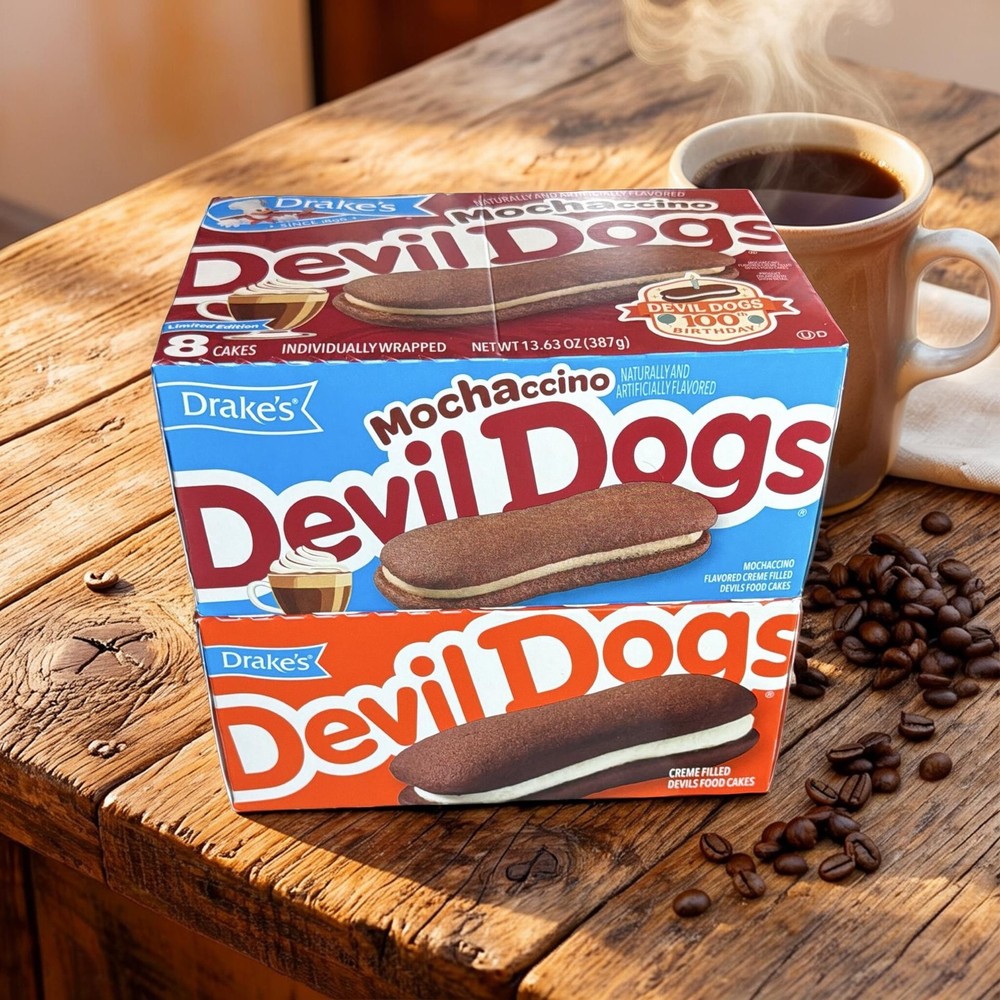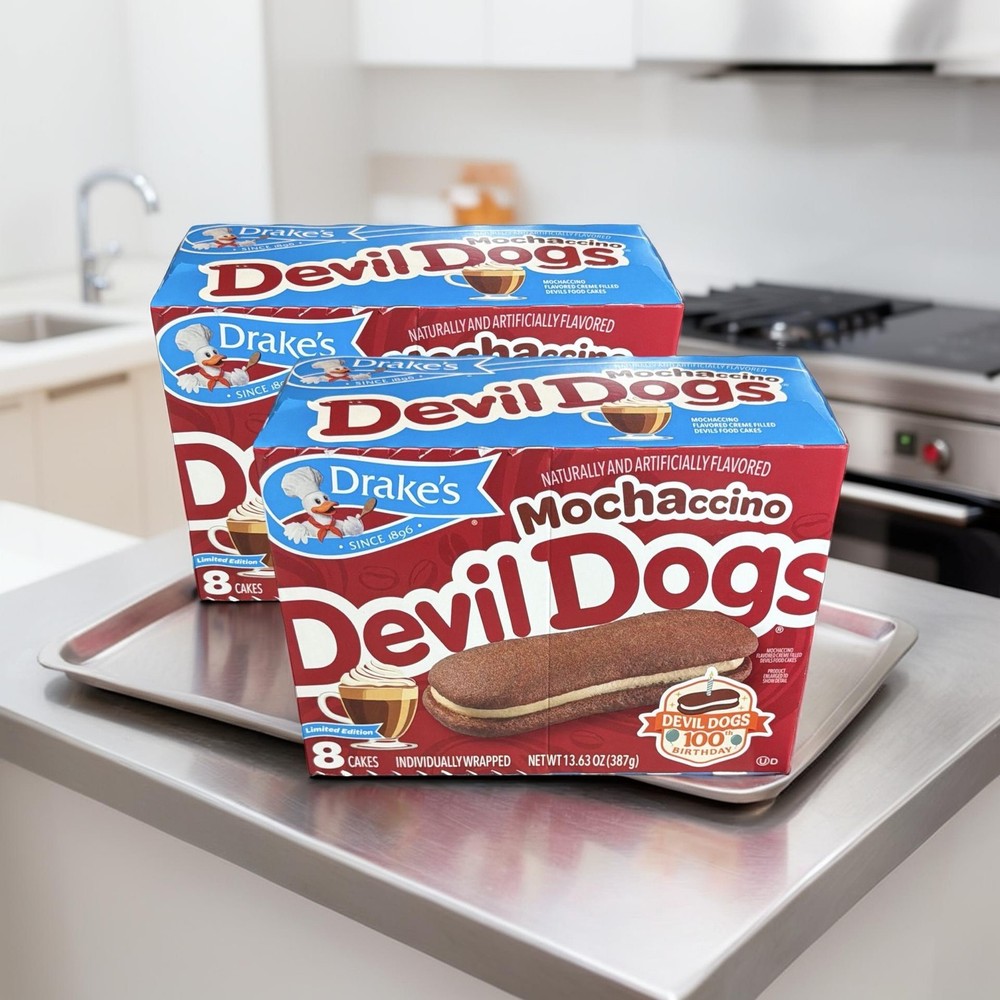 << The item is a Size 2 Packs >> Stock up on the bold new flavor with this Drake’s Mochaccino Devil Dogs 2-Box Bundle. Each order includes two full boxes of Mochaccino Devil Dogs, combining rich chocolate cake with smooth, coffee-inspired crème filling. Perfect for fans of mocha flavors and classic snack cake lovers looking for something new. Great for sharing, gifting, or keeping your pantry stocked with this exciting twist on a classic favorite. ☕🍫 Drake’s Mochaccino Devil Dogs – 2 Box Bundle ✨ Love mocha flavor? This bundle includes 2 full boxes of Drake’s Mochaccino Devil Dogs , the bold new twist on a classic favorite. 😋 Each snack features soft chocolate cake sandwiches filled with smooth, coffee-inspired crème for a rich and satisfying treat. Perfect for snack time, sharing, or stocking your pantry. ☕🍫 Why You’ll Love It: ☕ Two full boxes included 🍫 Chocolate cake with mocha-style filling ✨ Limited flavor option 🎁 Great for sharing or gifting Bundle Includes: 2 boxes Mochaccino Devil Dogs Ingredients: Contains wheat, milk, soy and eggs. Nutrition facts: See individual packaging. ✨ Double the mocha, double the indulgence — grab this flavor while available! ☕🍫 #Drakes #DevilDogs #Mochaccino #SnackCakes #MochaFlavor #LimitedEdition **Note Items will have shelf life of 1-3 Weeks upon receipt, it is stocked fresh weekly every week and these will be the best possible dates at any given time 2 Packs Stock up on the bold new flavor with this Drake’s Mochaccino Devil Dogs 2-Box Bundle. Each order includes two full boxes of Mochaccino Devil Dogs, combining rich chocolate cake with smooth, coffee-inspired crème filling. Perfect for fans of mocha flavors and classic snack cake lovers looking for something new. Great for sharing, gifting, or keeping your pantry stocked with this exciting twist on a classic favorite. Includes 2 full boxes of Mochaccino Devil Dogs || Chocolate cake sandwiches with coffee-inspired crème filling || Limited flavor twist on the classic Devil Dogs || Perfect for mocha lovers and snack cake fans || Great for sharing or stocking up