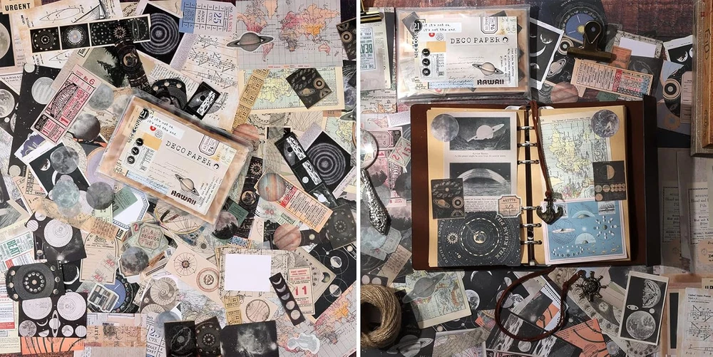 Store New Arrivals Add to Favorite View Feedback Contact Draupnir 200Pcs Vintage Junk Journal Supplies,Scrapbook Supplies Scrapbooking Paper and Stickers Ephemera for Art Aesthetic Journaling Kit Collage(Celestial) Description Item model number 00022-Astrology Sheet Size Half Letter Sheet Count 200 Color Celestial Product Dimensions 6.7"L x 4.7"W Material Paper Style Astrology Item Weight 2.11 ounces Shape Rectangular Paper Finish Matte Recommended Uses For Product Crafts, Scrapbook Brand Draupnir Manufacturer Draupnir Value Pack:200pcs of vintage assorted paper & sticker ephemera kit, including 120 pcs scrapbook papers(6.7×4.7inch, 60 patterns, 2 of each) and 80 pcs patterns washi stickers(40 patterns, 2 of each). A collection of vintage style celestial theme junk journal good stuffs! Celestial Theme Junk Journal Supplies:This 200pcs paper & washi stricker kit with a variety of celestial and astrology designs.Such as: Various planet stickers, space, moon phase, planet map, world map, astronomy, astrology map, ticket, receipt, etc. Very suitable for celestial themed junk journals, collages, scrapbooking, art projects! High-Quality Paper & Washi Sticker:Thanks to Draupnir's superb printing technology, everything on the paper is exceptionally clear, and the colors are very rich.We use High-Quality washi, so the washi sticker durability, easy to tear and perfect for collaging.Also, handwriting friendly and printer friendly. Multi Use: These aesthetic washi stickers and papers are for both quality and beauty. They are perfect ornaments to personalize your scrapbook, craft, bullet junk journal, notebook, album, gift package, card making, certificates, invitations, poetry scrolls, letters, maps, medieval-looking documents, envelops.Beautiful and impressive ephemera stickers will give more fun to your life. Design For Junk Journal Lover:An junk journal supplies pack for junk journal lover and a great gift for friends, classmates, daughter. 24-Hour Service: If you have any questions, or encounter any problems, please contact us! Draupnir will answer your questions within 24 hours and give you the best solution! Product Description Draupnir 200Pcs Vintage Scrapbooking Supplies There are approximately 200 pieces of assorted non-adhesive paper & translucent washi stickers with a variety of artistic designs. Perfect for junk journals, scrapbooking,wall decor,DIY gift, collages,art journaling, traveller's notebooks, diaries, cards, tags, bookmarks, penpal letters, mixed media art or art projects that call for artistic feel! The package includes: -Assorted decorating paper,80 pieces -Translucent washi stickers, 120 pieces A mixed 200Pcs paper & sticker pack with mixed sizes and designs. They have a very strong vintage artistic atmosphere, you can use them in the decoration of daily life. ABOUT US We offer the best prices around on high quality products. Our E-store includes media such as books, movies, music and games while offering electronics, toys, sporting apparel, clothing, tools, general home, garden items and more. SHIPPING We are always working hard to ensure your package arrives as soon as possible. Please understand that some factors like weather, high postal traffic, and the performance of shipping companies are outside of our control. We offer free shipping to the lower 48 states and ship within 2 business days of payment, usually sooner. We do not accept P.O. Boxes. Please provide a physical address. RETURNS We offer a 30-Day Return Policy on items which you are not completely satisfied with. You have the option for a full-refund or an exchange of the item. No returns are available on items shipped outside of the USA. PAYMENT We accept PayPal. CONTACT US This page content is yet to come Please ad us to your favorite seller and visit again later Thank You CUSTOMER SATISFACTION We try our very best to make sure every customer is completely satisfied. If there's a problem, message us! We're happy to help.