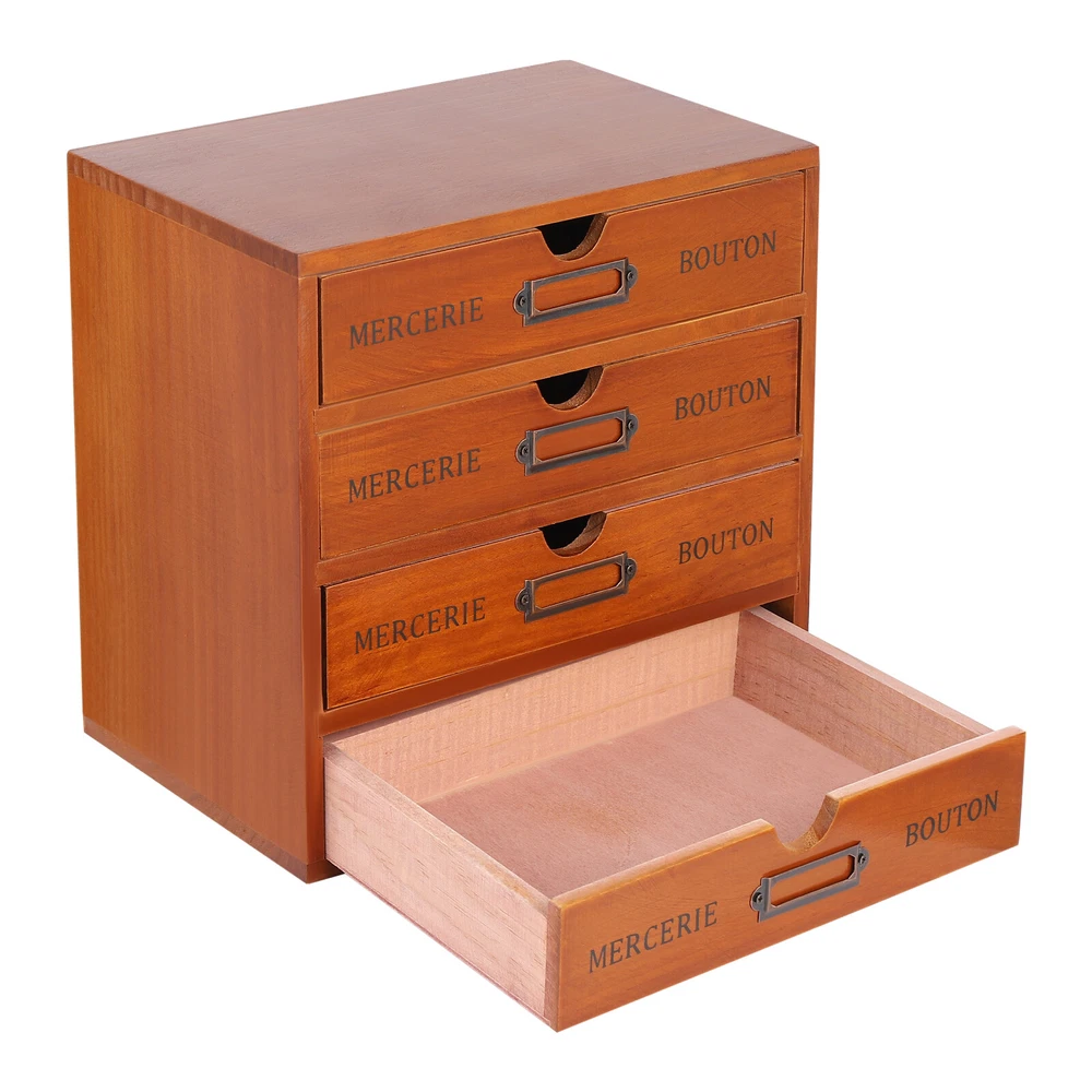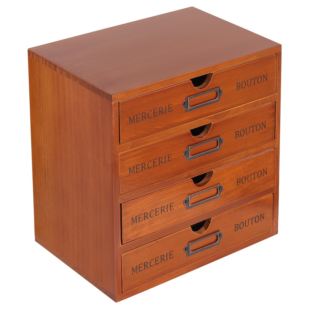 SpecificationsStyle: RetroColor: Brown Material: Pine Wood, IronProcess: Spray Painting Shape: RectangularAssembly Required: NoNumber of Drawers: 16Number of Items: 4 Mount Type: TabletopEach Drawer Max. Load-bearing Capacity: 1kg/2.2 lbsTotal Max. Load-bearing Capacity: 16kg/35.27lbs Each Drawer Size: 21*15.5*3.81cm/8.25*6*1.5inch Each 4-tier Drawer Organizer Size: 24.5*17.5*24.5cm/9.6*7*9.6inch Overall Size of 4 Stacked Drawer Organizers: 49.8*17.5*49.8cm/19.6*6.89*19.6inch Package Size: 57*41*32cm/22.44*16.14*12.6inchGross Weight: 10kg/22.05lbsNet Weight: 8.8kg/19.4lbs Package Included4* Drawer Organizers Drawer Organizer Wooden Desktop Organizer Wooden Storage Box Description This drawer organizer set is a four-piece set, including 16 drawers. It is designed to make full use of space and achieves fine classification storage so that it will make your life and work more orderly. The retro style shows an antique charm, which can express a refined sense of fashion. This product has a small footprint and lots of storage space, making your life more organized and tidy, get it now. Key Features High-quality Material: The drawer organizer set is made of pine wood with a painting spraying process, which has good corr osion resistance, is sturdy and durable, and can be used for the long term. Vintage Appearance: The pleasing brown color, vintage metal label holder, rectangular structure, and smooth lines give it a retro style, adding beauty and vintage elements to your room. It plays a unique decorative role while using, bringing an old-world charm into your new-world home. Set of 4: Our package includes 4 pieces of organizers, including a total of 16 large-capacity drawers, which are enough to easily store jewelry, cosmetics, documents, and other small items, making your desktop cleaner . You can use these wooden storage boxes as a set or separately for different areas in your home. ' ' Excellent Load-bearing Capacity: Thanks to its thickened material and rectangular structure, each drawer can hold about 2.2 lbs of items, and this product can hold about 35.27 lbs in total, so you can use it with confidence. Space-saving: The size of a single drawer is 8.25*6*1.5inch , which occupies a small area and the multi-tier design uses vertical space rationally, so you get more space to store items without taking up too much desk spac e. Moreover, they are stackable for your convenience. Convenient to Use: Hollow-out handle on each drawer makes it easier to pull out and close the drawer, which not only provides convenience but also enhances the aesthetics of the entire product. Ready to Use: It does not need assembly, so you can directly use it after receiving and cleaning it, greatly saving time and effort. Easy to Clean: With a smooth surface and detachable drawers, it is very easy to clean with a damp cloth (not included). Ideal Gift: With a delicate outlook and practical storage function, it is a wonderful housewarming, wedding, or festival gift for your families, friends, or colleagues. Protective Package: Foam can effectively reduce the normal impact and ensure that it is fully delivered to you to the greatest extent. Details Iron Label Holders: They allow you to write the labels (not included) for each drawer to categorize, helping you quickly find desired items. Smooth Edges: Smooth and burr-free edges no t only increase the beauty of the product but also improve the safety of use. Application This product can be used in living rooms, bedrooms, study rooms, offices, dormitories, schools, and other places. It can be used to store cosmetics, files, books, letters, papers, magazines, tea bags, sugar packets, necklaces, earrings, bracelets, rings, perfumes, lipsticks, household medications, herbs, nutrition-related capsules, and other items. Specifications Style: Retro Color: Brown Material: Pine Wood, Iron Process: Spray Painting Shape: Rectangular Assembly Required: No Number of Drawers: 16 Number of Items: 4 Mount Type: Tabletop Each Drawer Max. Load-bearing Capacity: 1kg/ 2.2 lbs Total Max. Load-bearing Capacity: 16kg/35.27lbs Each Drawer Size: 21*15.5*3.81cm/8.25*6*1.5inch Each 4-tier Drawer Organizer Size: 24.5*17.5*24.5cm/9.6*7*9.6inch Overall Size of 4 Stacked Drawer Organizers: 49.8*17.5*49.8cm/ 19.6 *6.89* 19.6 inch Package Size: 57*41*32cm/ 22.44 * 16.14 * 12.6 inch Gross Weight: 10kg/ 22.05 lbs Net Weight: 8.8kg/ 19.4 lbs Package Included 4* Drawer Organizers Notes The material of the product is pine wood, so the surface may have some flaws, which is a normal phenomenon. Please check the quantity carefully after receiving the product. Please note that this product does not include other items shown in the picture. Please do not place it in a damp place or near an ignition source. Please allow the slight color difference caused by the shooting light and 1-3cm error due to manual measurement, and make sure you do not mind before you order. Payment Delivery details Terms of sales About us Contact us Payment We accept ebay payment 。 Fees such as import duties, taxes are not included in the item price or shipping costs. These charges are the buyer's responsibility. Delivery details Shipping: 2-9 working days to: USA Terms of sales We maintain high standards of excellence and strive for hundred percent customer satisfaction. Feedback is very important to us. We hope that you contact us immediately before you give neutral or negative feedback, so that we can address your concerns. It is impossible to address issues if we do not know about them! About us Your satis faction is our ultimate goal. We work hard to earn your trust and future business. Our certified technicians have tested each item before shipping. The unit comes with 1 year limited warranty on all manufacturing defects. a) If you receive a defective item, you may return it or ask for a discount. Please contact us within 14 days after you receive the package. b) What you returned must be intact and in its original packaging as re?