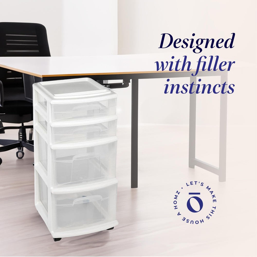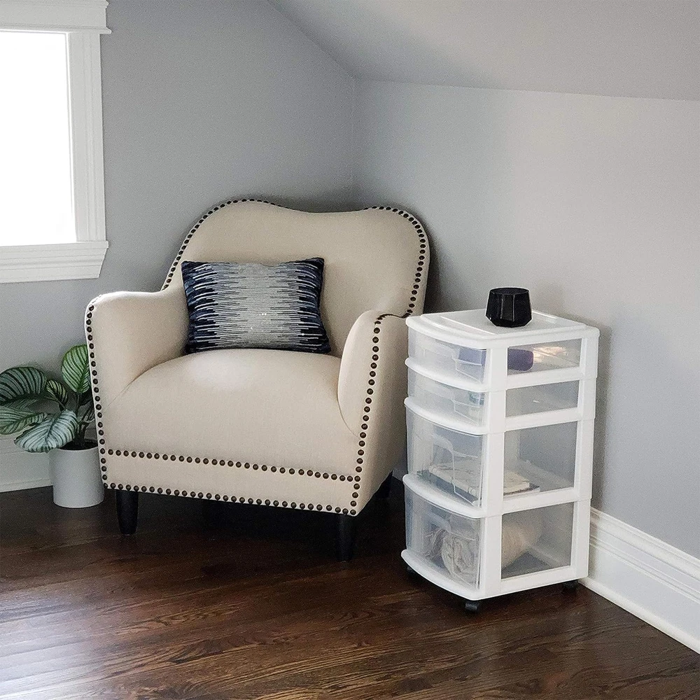 Cart Masterpiece: Perfect the art of hiding your hoard with the storage carts with drawers. This plastic drawer cart is made to fit anywhere you need organizing power, whether at home or work. For Small Spaces: This roomy plastic organizer measures 12.5" L x 14.25" W x 25.5" H. Each large drawer measures 12.31" L x 9.92" W x 6.85" H with the small drawers measuring 12.31" L x 9.92" W x 3" H. It Will Fit: Our rolling drawer organizer cart features clear plastic materials and removable wheels for easy transportation. Use them to toiletries, office supplies, crafts, and more. From Trash to Treasure: Life in plastic is fantastic when the plastic is made from 90% recycled materials. We know the earth is important to you, so our cart is good for your items and the planet. for Your Home: From organization to storage, we have the container that you are looking for. Allow us to make your house a .
