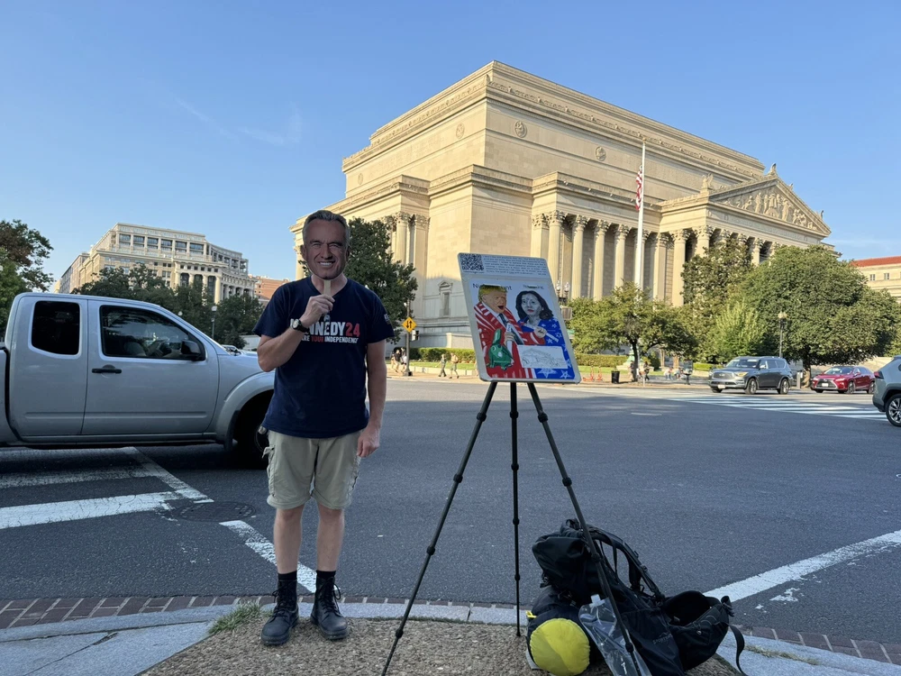 Drawing of The National Archives On A Print Of Trump And Kamala