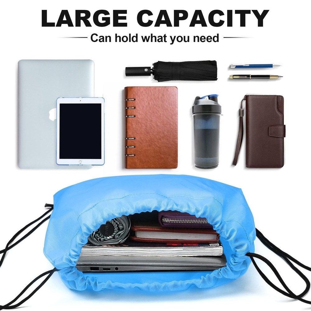 Drawstring Bags Bulk 150 PCS, Drawstring Backpack Draw String Bag Cinch Sack for Gym Traveling Yoga Outdoor Sports (30 Colors) Product Details Color: Multicolor Number of Items: 150 Brand: Grneric MPN: drawstring bags UPC: Does not apply EAN: Does not apply Product Dimensions: 0.2 x 13.3 x 16.5 inches Item Weight: 10.5 pounds Department: unisex-adult Manufacturer: Grneric Item model number: drawstring bags Age Range Description: Adult Item Weight: 4.77 Kilograms Number Of Items: 150 Capacity Total: 14 Liters Lightweight & Durable: Drawstring bags bulk Made of high-quality tear-resistant polyester material, these drawstring backpacks are lightweight yet strong enough to withstand daily wear and tear, ensuring long-lasting use Spacious Capacity: Measuring 16.5''/42cm in length and 13.3''/35cm in width. Drawstring bags designed large capacity space to hold clothes, sports gear, water bottles, and more, making it perfect for gym workouts, travel, camping, and everyday use Convenient Drawstring: The drawstring backpack's easy pull drawstring design allows quick access to your things while providing secure storage. The double-strap design distributes weight evenly for comfortable carrying Foldable & Versatile Use: Easily foldable for compact storage and effortless portability. The draw string backpack ideal for gym, yoga, outdoor activities, swimming, party favors, beach trips, and more Multiple Colors & DIY Friendly: String bags available in a variety of colors combinations to suit different preferences. The plain design supports DIY customization. You can print or embroider on drawstring cinch bag to create exclusive patterned bags for personal use, sport events, or special occasions Reusable & Easy to Maintain: Designed for repeated use, Grneric drawstring bags are washable and easy to clean, making them a practical choice for everyday activities and long-term use