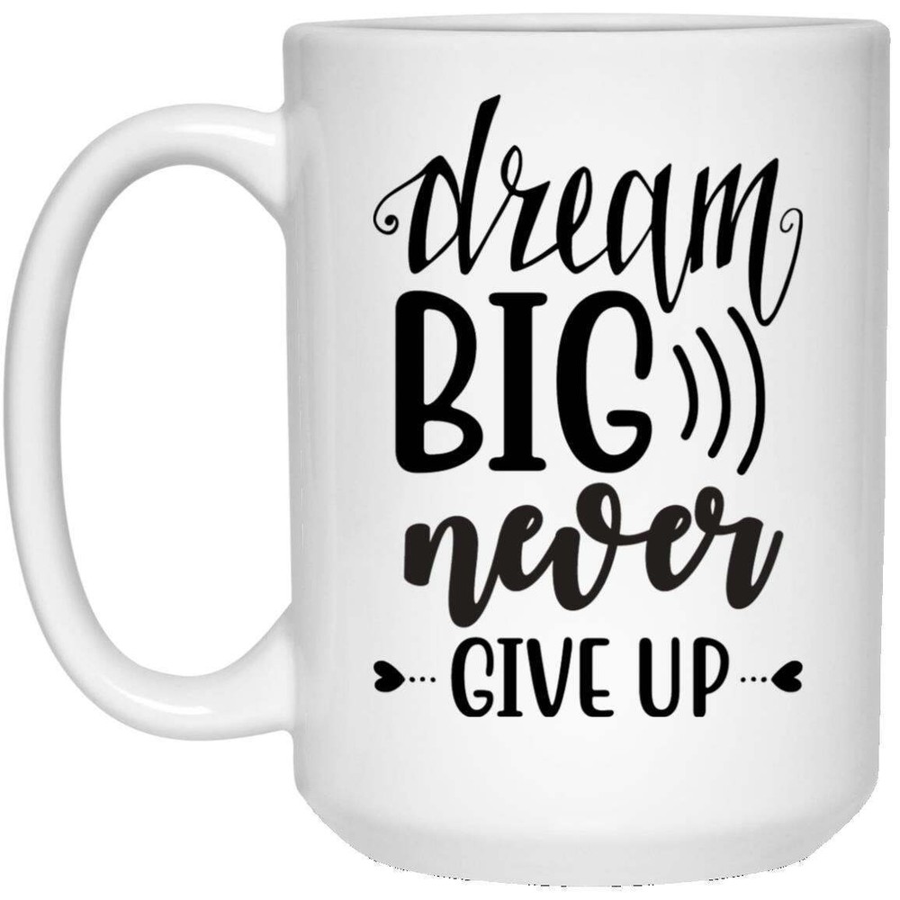 Coffee Mug Dream Big Never Give Up Motivational Gift Inspirational Mug Funny Product Details.. This high quality 11oz. ceramic white mug has a premium hard coat that provides crisp and vibrant color reproduction sure to last for years. Perfect for all hot & cold beverages. The highest quality printing possible is used. It will never fade no matter how many times you wash it. Material: 100% Ceramic. Print both sides. Dishwasher and Microwave Safe. High Gloss + Premium White Finish. Printed in the U.S.A. Personalized & Custom. We support personalized and custom mug to add custom, when placing an order, you can add notes to the "order note" in shipping address section. Also you can contact us directly via message. Shipping Info. Ready to ship in 1 to 2 business days, All products are made-to-order and proudly printed in the United States. Shipped by USPS and DHL, You will receive your order in 5-7 days. Replace & Refund. All products are defective during shipping broken, chipped will be replaced free of charge. You are not satisfied with the product, we will refund 100% money to you. If any other issues arise, please do not hesitate to message, we would be more than happy to assist you.