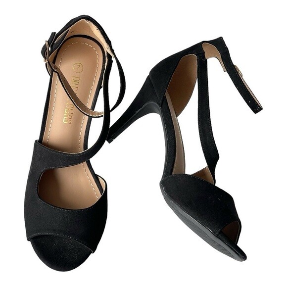 Dream Pairs Black Suede Heels Strappy Sandals Bridal Prom Dress Heels, Sz 7 NEW without tags! 3" Heels Slightly Cushioned Footbed THANK YOU!