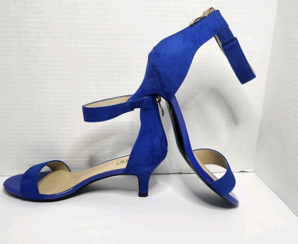 Dress up your feet with these stylish and comfortable Dream Pairs Kitten Heel Open Toe Ankle Strap pumps. The blue suede upper material and foam insole provide a cushiony feel, while the rubber outsole offers stability. These versatile shoes are perfect for any occasion, from weddings to workwear. The ankle strap with zipper accent adds a touch of sophistication, making these pumps suitable for clubwear and formal events. The Dream Pairs pumps have a mid heel height of 2-2.9 inches, making them comfortable for all-day wear. The open toe design and solid pattern make these shoes a great addition to any wardrobe. These pumps are available in women's size 6.5 and are suitable for summer, fall, and spring seasons. Add these gorgeous Dream Pairs pumps to your shoe collection today!