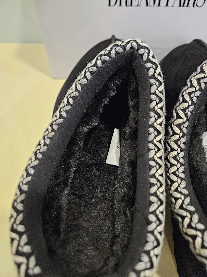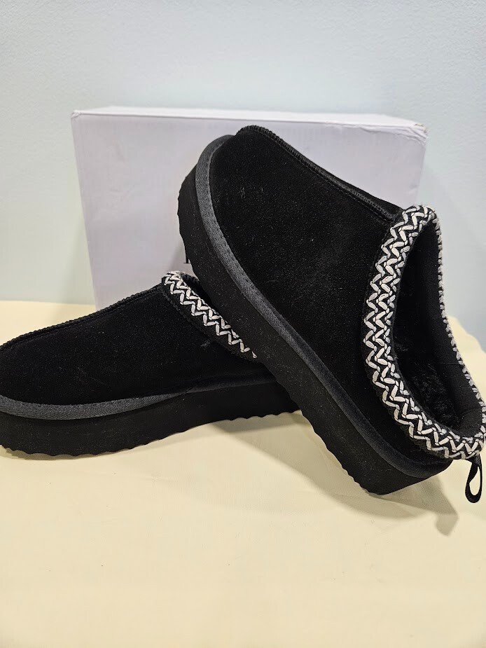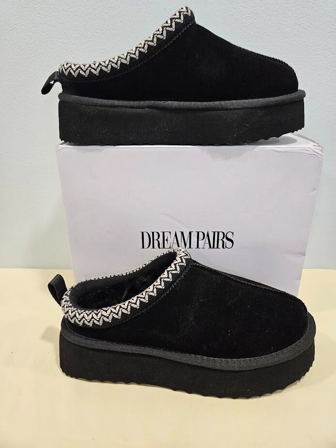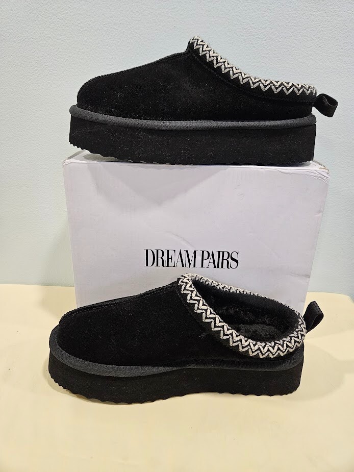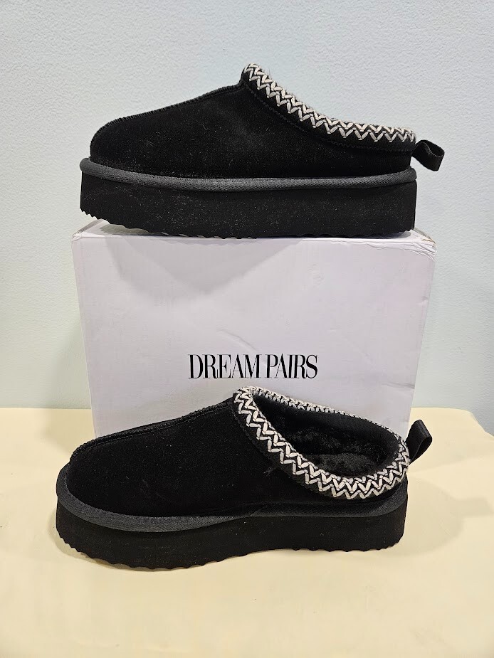 Dream Pairs Women's Black Slippers. The slip-on design with a round toe shape and low heel height of 1-1.9 inches provides comfort and convenience. Can be worn indoors and outdoors. Perfect for running errands. Made with genuine suede and faux fur lining material, these slippers are water-resistant and perfect for travel, activewear, and casual occasions. Size 7. Ships from a smoke free home! Please see all photos for exact item condition. Thank you for checking out my store! All items are shipped within 1 or 2 business days. Make a bundle to save on shipping cost.