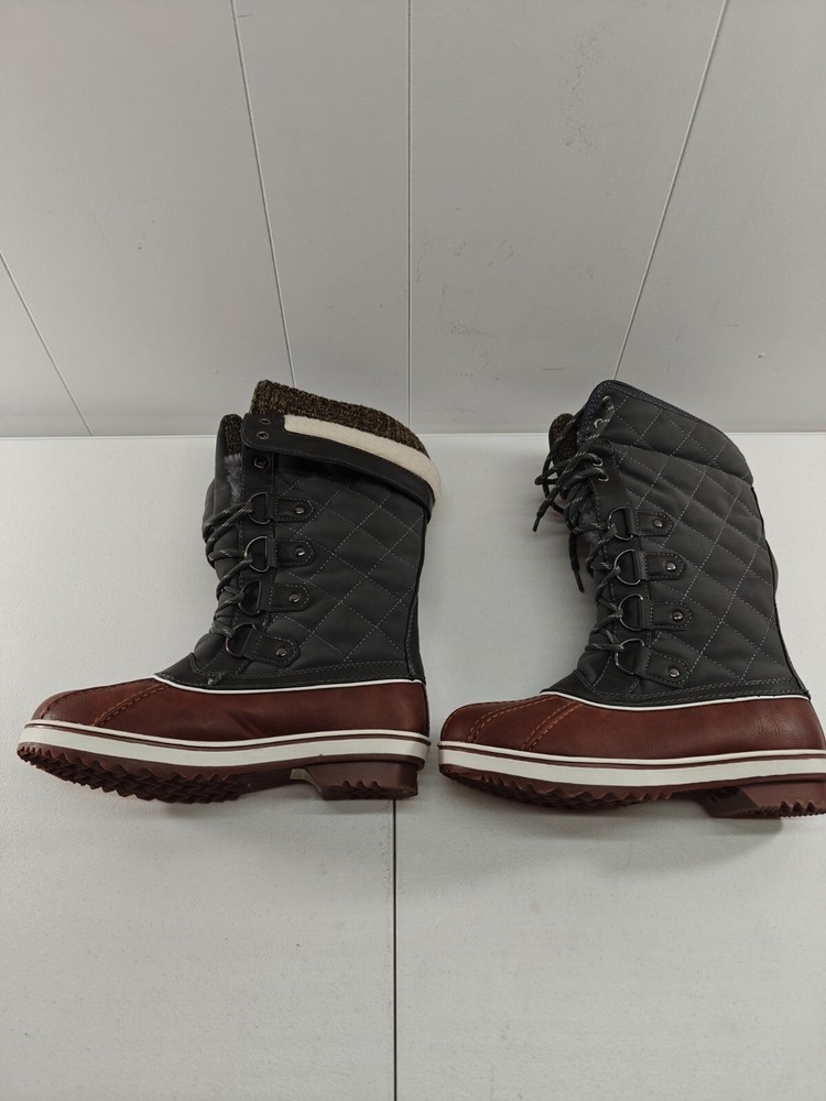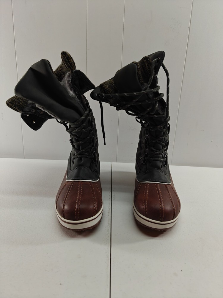 Dream Pairs Mid Calf Lace Up Snow Boots Womens Size 6 US TAN KHAKI. Boots only worn once, never worn outside. "Like new" condition. They are oddly curved due to the way they were stored. This does not affect the fitment or form in any way.