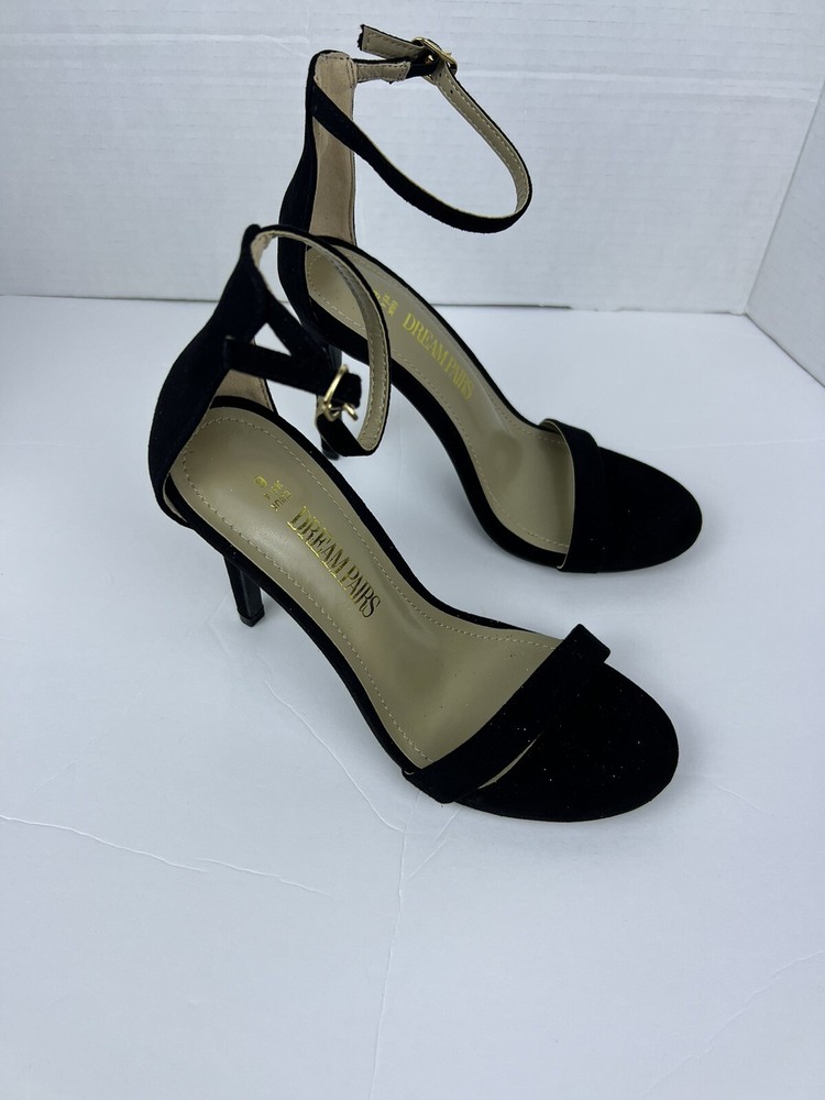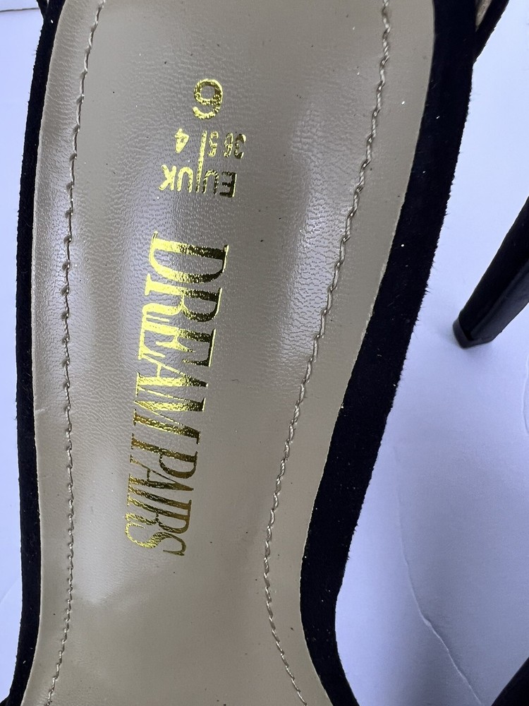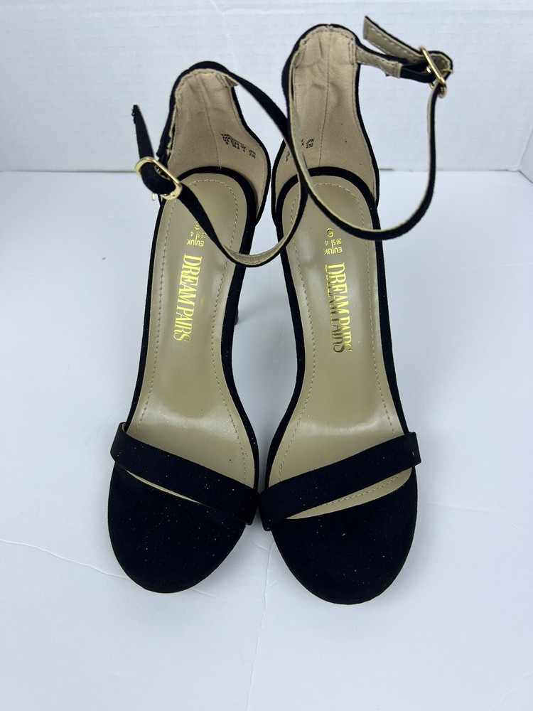 UK Shoe Size: 4 Brand: Dream Pairs Department: Women Pattern: Solid Heel Height: Ultra High (4 in & Higher) Character: Dream Shoe Width: M EU Shoe Size: 36.5 Personalize: No Country/Region of Manufacture: China Toe Shape: Almond Toe Heel Style: Stiletto Occasion: Formal, Party/Cocktail, Wedding Accents: Buckle, Strap Features: Ankle Strap Theme: Clubwear, Dance, Fairytale & Fantasy, Going Out, Pageant, Wedding Closure: Buckle Customized: No Vintage: No Season: Fall, Spring, Summer, Winter Upper Material: Faux Suede Type: Heel Style: Pump Color: Black US Shoe Size: 6