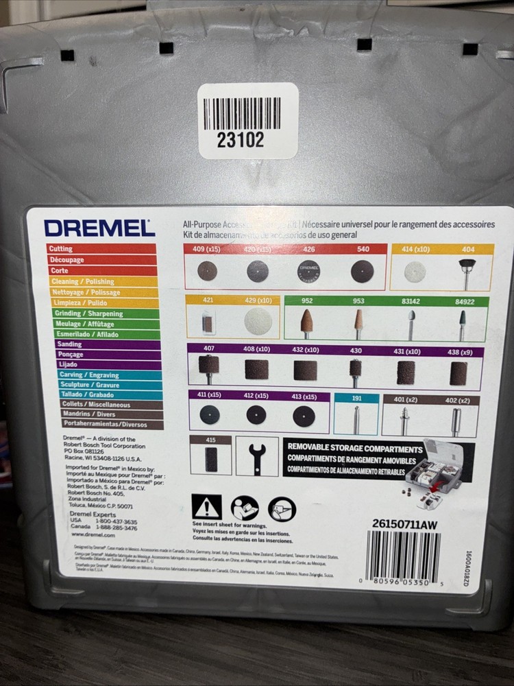 The Dremel 150 Piece Rotary Tool Accessory Storage Kit with EZ Lock 710-08 is a comprehensive tool kit designed for Dremel rotary tools. This kit includes 160 pieces of accessories, such as sanding bands, cutting wheels, and polishing compounds, all neatly organized in a black storage case. The EZ Twist Nose Cap feature makes it easy to change out accessories quickly and efficiently, while the 110-volt voltage ensures compatibility with Dremel tools. Perfect for DIY enthusiasts and professionals alike, this kit provides everything you need to tackle a variety of projects around the home and workshop.