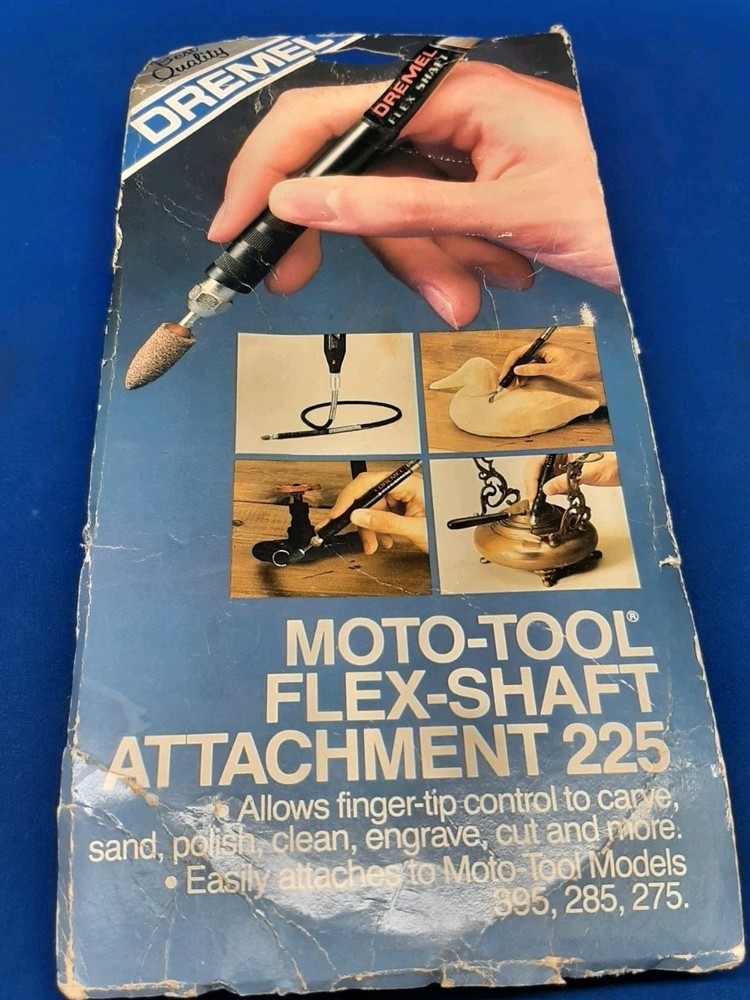 Up for sale i have a Dremel flex shaft attachment 225 sealed in the original packaging. The packaging has dirt and wear from storage. The flex shaft is in new condition. You will be getting the exact flex shaft pictured in this listing.