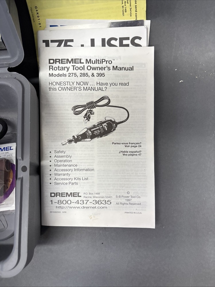 The Dremel Multipro 395 Type 5 Kit is a versatile rotary tool designed for various home improvement and DIY projects. With a voltage of 120V, it offers reliable power for cutting, sanding, and drilling tasks. This kit does not come with a battery, making it convenient for use without the need for recharging. The Dremel brand ensures quality and precision in every project, making this tool a valuable addition to any workshop or tool collection.