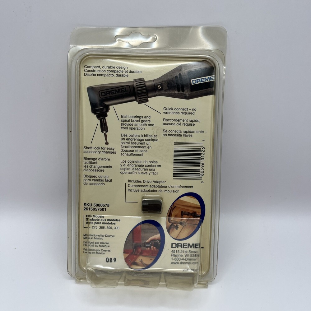 Elevate your workshop capabilities with the Dremel Genuine OEM Replacement Angle Attachment - 575. Designed specifically for compatibility with Dremel rotary tools, this attachment is an essential accessory for those who demand efficiency and precision in their projects. The sleek black finish complements the durable build, ensuring a seamless integration with your existing tool collection. This angle attachment is a single-piece, corded electric rotary tool accessory that does not include a battery, keeping your operations uninterrupted and reliable. Measuring 6 cm in length, 8.5 cm in height, and 3 cm in width, it's compact enough for detailed work while still providing the power and stability Dremel is known for. Whether for home or professional use, this attachment is a genuine Dremel replacement part that promises a boost in your Rotary Tool experience.