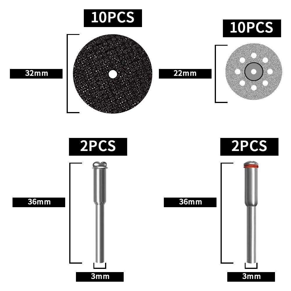 Cutting Discs for Dremel Rotary Tool, 3 Different Saw Blades to Meet Your Different Needs, Cutting Wheel Set Can Cutting Wood/Metal/Plastic/Glass/Stone and Make DIY Craft ★ 10 pcs DIAMOND CUTTING WHEELS – It is completely coated with fine diamond particles--thin and sharp. Designed for rotary tools and replacement EZ545/544 lock cut off wheel. Suitable for cutting gem, jade and glass ★ 10 pcs RESIN CUT OFF DISCS – With low heat generation and thin cutting line, the cut off wheels are applicable to electric drills, hanging grinders, electric grinders, etc. They can be used to cut metal, plastic, chassis modification, thin metal circuit board and DIY production after connected with mandrels, and are ideal for olive cutting. And comes with 2pcs 3mm mandrels ★ 6 pcs HSS CIRCULAR SAW BLADES – The cut off saw blades are high speed steel and there are 6 kinds of outer diameters 22/25/32/35/44/50mm and the thickness of 0.8 mm. They are suitable for cutting wood, plastic products, aluminum alloy, soft metal, etc. And comes with 1pcs 1/8''(3.2mm) shank+ 1pcs 6mm shank ★ HIGH COMPATIBILITY – These cutting wheels are suitable for Dremel rotary tools as good as original. We use original rotary tools to test this accessory kit. And the mandrels fit for most power die grinders or rotary tools & air tools. The whole cutter wheels set is suitable for cutting wood, plastic, gemstone, glass, ceramic, stone, aluminum and copper. The mini rotary tool is suitable for DIY projects and the home hobbyist 【CLIENTS FOREMOST, SERVICE FIRST】Best product and top service are always what we are aiming to provide for each customer friends. If you are not satisfied with the size, the functions or any other reasons, just reach out to our customer services team, solutions would be within 24 hours Shipping We offer FREE shipping on all orders! We ship within Three business days of payment, usually sooner. We use a selection of shipping services such as UPS, FedEx, USPS etc. We only ship to the lower 48 states, no APO/FPO addresses or PO Boxes allowed. Local pickups and combined shipping options are not provided at this time. Return You can return a product for up to 30 days from the date you purchased it. Any product you return must be in the same condition you received it and in the original packaging. Please keep the receipt. Payment We accept payment by any of the following methods: PayPal Please pay as soon as possible after winning an auction, as that will allow us to post your item to you sooner! Feedback Customer satisfaction is very important to us. If you have any problem with your order, please contact us and we will do our best to make you satisfied. Contact Us If you have any queries, please contact us via ebay. We usually respond within 24 hours on weekdays. Please visit our eBay store to check out other items for sale! Thank you for shopping at our store.