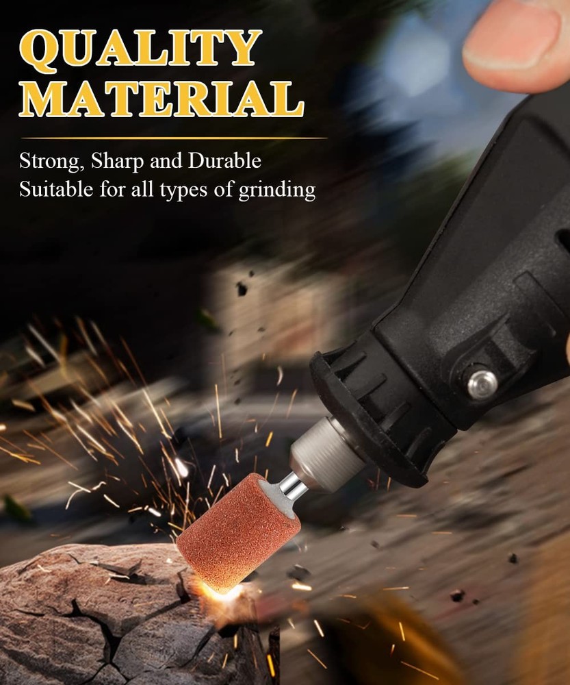 Wide Application - Rotary Tool Sanding Bits can be used for a variety of applications like sharpening lawn mower blades, screwdriver tips, knives, scissors, chisels and other cutting tools. Use to remove flash from metal castings, deburring any metal after cutting, smoothing welded joints, grinding off rivets and removing rust Different Shape Meet More Needs - Made into 10mm bullet shape, the grinding wheels for drill fit into tight spaces. Ideal for sanding after beveling holes in metal and wood. Made into 10mm and 15mm cylinder shape are ideal for smoothing, sharpening, deburring and other grinding and shaping needs More Durable - Made with aluminum oxide, A high-quality industrial abrasive made for extended use, making this Bits tough enough to smooth out most materials including stainless steel. It has plenty of shank for the collet or chuck to hold onto for proper attaching. And, this durable, grinding stone can be cleaned and restored to its original shape after extended use, longer tool life and more efficient grinding Wide Compatibility - Features a 1/8" shank, making the Grinding Stone suitable for most Dremel Rotary Tool, and other electric drills, cordless drills, die grinders What You Get - 14 Pcs 10mm cylinder shape, 14 Pcs 15mm cylinder shape, 14 Pcs 10mmbullet shape, and comes with a reusable clear storage case, and our provide friendly customer service, If YOU have any problems, please feel free to contact our customer services team, solutions would be within 24 hours