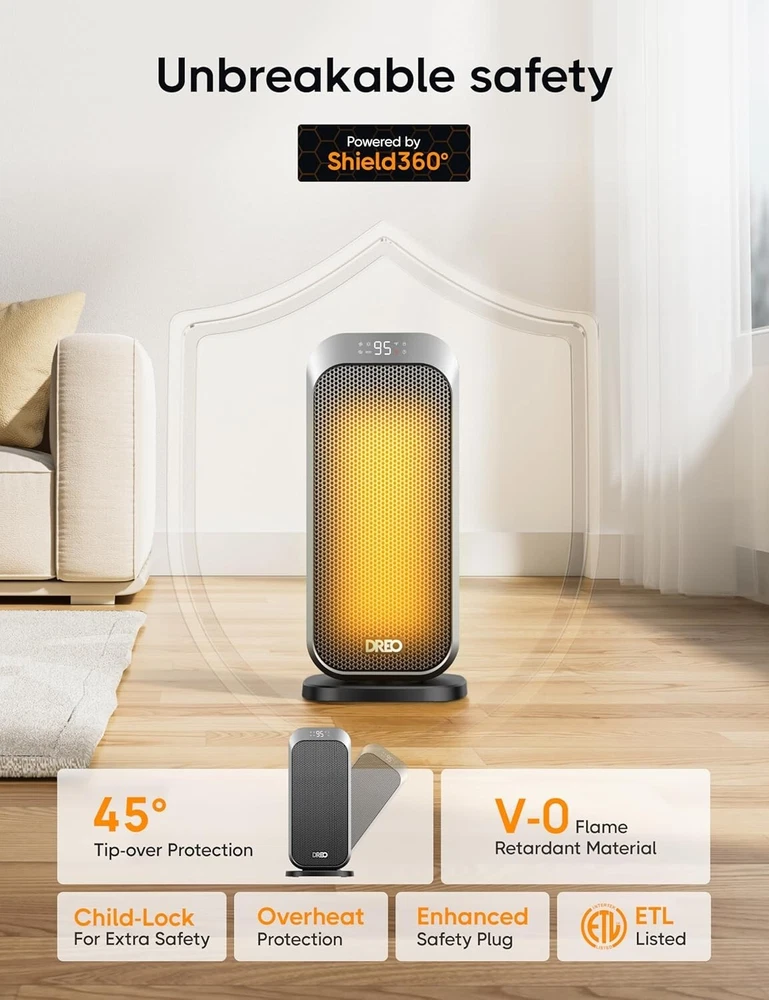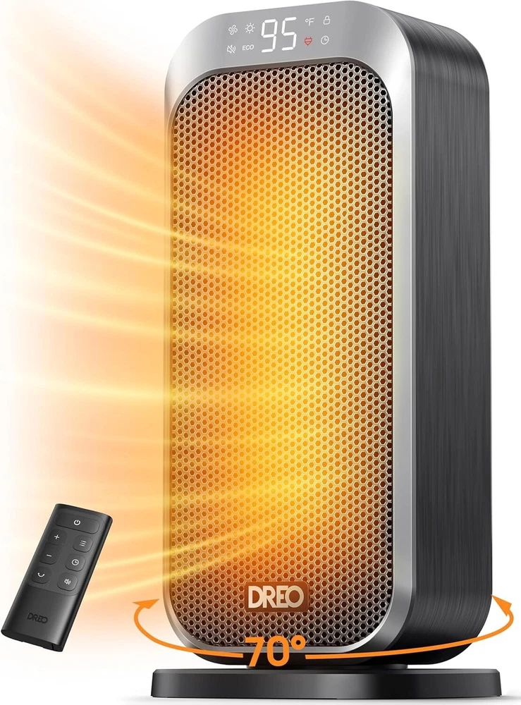 Dreo (DR-HSH019) Quiet Space Heaters (1500W) Electric Heater with Remote, PTC Ceramic Heater with Thermostat, 12H Timer, 70° Oscillation, Digital Display, Fast Safety Room Heater for Bedroom Office Powerful and Efficient Heating: This Dreo Solaris 317 space heater for indoor use utilizes a Hyperamics 1500W advanced PTC system, efficiently heating up any space quickly and improving the circulation of warm air. Compared to traditional heaters, Solaris 317 can reach areas up to 200% farther, ensuring efficient and widespread heating in home, bedroom, and office Cozy Tranquility: Dreo's heater for bedroom provides whisper-quiet operation, thanks to its brushless DC motor and winglet fan design that minimizes turbulence. Enjoy warmth in serenity and ensure a better sleep, with noise levels as low as 34dB Comprehensive Safety: The electric heater is built with a child-lock, tip-over protection, V0 flame retardant material, overheat protection, and a safety plug, all certified by ETL. It provides robust safety protections for your family, enhancing safety for children, strengthening defenses against accidents, and ensuring peace of mind for users Always at the Perfect Temperature: This heater for home with Thermostat allows you to set your desired heat level within a wide range of 41-95℉ with ±1℉ increments, ensuring precise and efficient heating. This feature not only keeps you comfortable but also helps save energy Experience even heat distribution: Our ceramic heater with a 70-degree oscillation function ensures warmth in every corner of your room. Set the heat flow to your preference, directing it in a specific direction or enjoying broader coverage Energy-Saving ECO Mode: The Adaptive ECO mode automatically adjusts the heat level to maintain your preferred room temperature, helping you save money while keeping you warm and comfortable I do not accept addresses of logistics companies and P.O. Box.