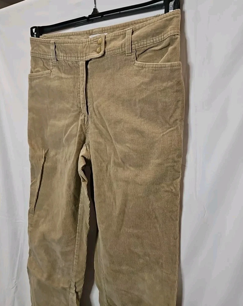 Pattern: Solid Handmade: No Size Type: Regular Department: Women Style: Dress Pants Color: Beige Features: Easy Care, Stretch, Front pockets Occasion: Casual, Formal, Party/Cocktail, Travel Brand: Dressbarn Season: Fall, Spring, Winter Material: Cotton, Spandex Fit: Regular Front Type: Flat Front Fabric Type: Corduroy Garment Care: Machine Washable Type: Pants Rise: Mid (8.5-10.5 in) Leg Style: Straight Personalize: No Size: 10 Closure: Button, Zip Vintage: No