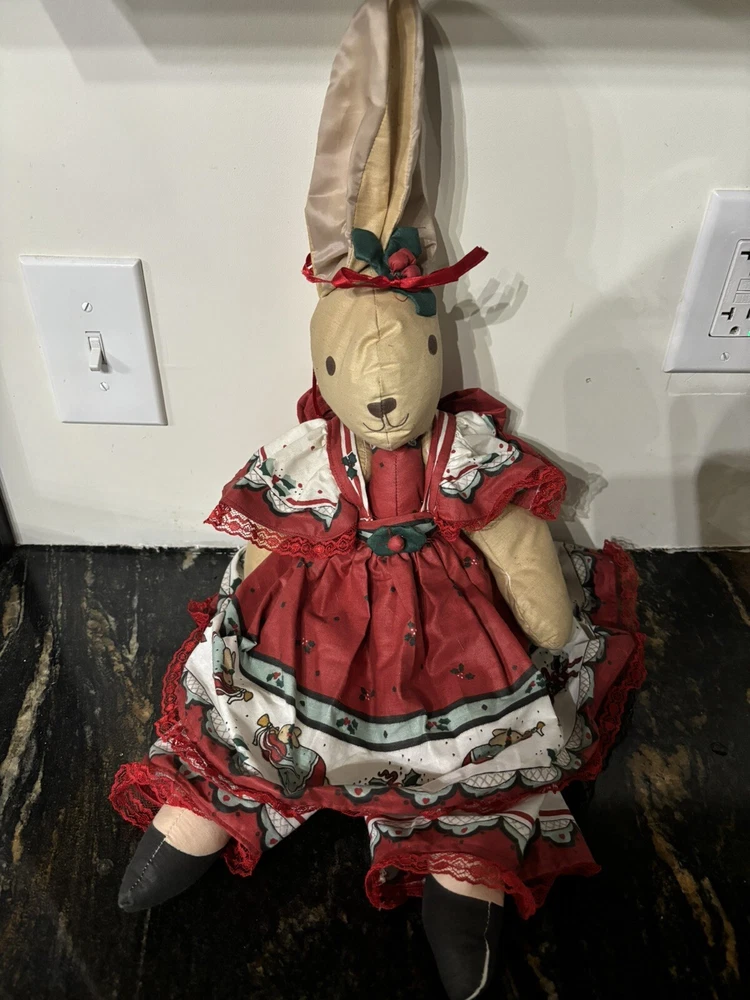 Dressed Christmas Ballerina Bunny ~ 24”L Moveable Arms & Legs EUC