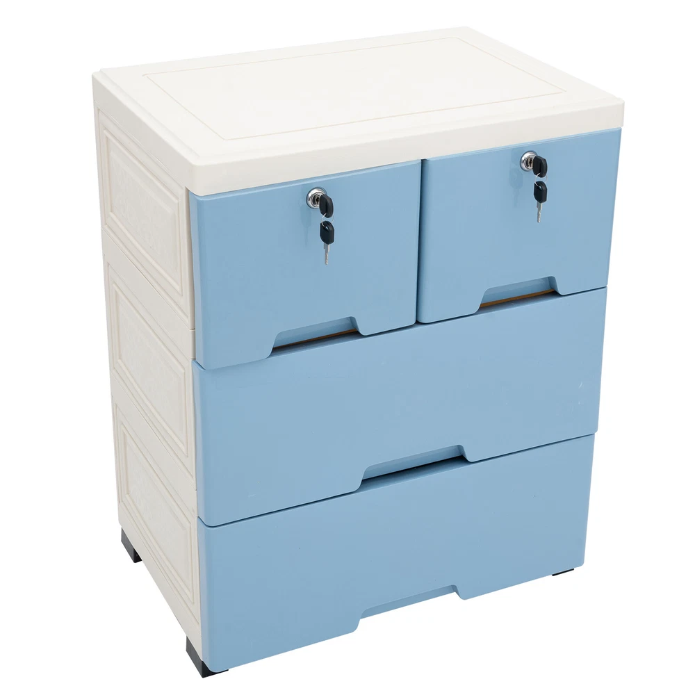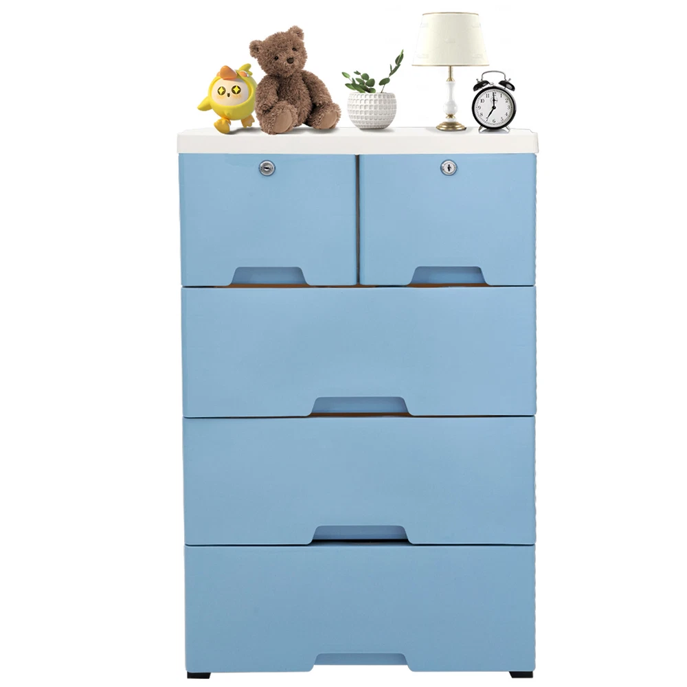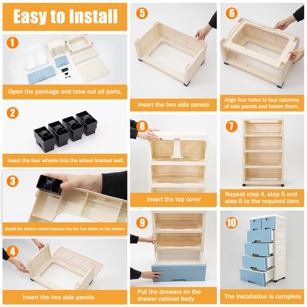 Dresser 6 Chest of Drawers Drawer Furniture Cabinet Bedroom Storage Organizer US Description Are you still worried about how to organize the items? This drawer cabinet will solve this problem quickly. It is made of high-quality PP material with a simple and elegant surface, and has enough space to accommodate items, keeping your home neat and clean, which creates a cozy atmosphere. This drawer cabinet is ideal for clothes, toys, magazines, books, etc. Also, you can put it in the living room, bedroom, bathroom, porch, etc. Key Features Detachable Design: The drawer cabinet can be detached into tiny pieces easily. If you're not using it, you can take it apart for easy storage, saving you a lot of space. Easy to Clean: The waterproof PP surface make it simple to clean. When it is dirty, you can wipe off the stain with a wet towel or rinse with water directly. Large Space: The size of each big drawer is 13.3* 17.7*5.9inch and each small drawer is 13.3*7.8*5.9inc h , which provides a large space to store items. The 6 drawers and top platform can fulfill your life storage needs at once. Simple Elegant Design: The simple appearance with classic white and blue color makes it more versatile, so it can be used as an organizer and decorative goodies for houses with different decorating styles. DIY Placement: You are free to reduce/add a layer at will according to your room layout, storage needs and preferences for flexible and convenient storage. Easy to Install: It can be assembled or disassembled easily and quickly without any other tools. Just insert panels into the holes, and you'll be able to get an ideal storage assistant. Sturdy and Durable: Panels are made of high classed eco-friendly PP material with injection molding and spray paint, which is not easy to deform after long-term use and allows it to carry up to about 88lbs of items overall. Guaranteed Customer Service: Your satisfaction is our primary goal. If you have any question about this dry ice machine, please feel free to contact us, we will reply and provide the solution to you as soon as possible. Details 4 Bottom Wheels: The four wheels on the bottom help you move it easily and smoothly anywhere at any time. Protruding Block: The protruding blocks on the drawer prevents the drawer from falling when pulled out and the contents from falling all over the floor, making your storage more hassle-free. Easy-grab Handle: Each handle on the drawer panels can help you pull the drawers conveniently and easily. Arc Edges: The arc design aims to protect your and your family members from scratches and bruises. Small Drawers with Locks: The two small drawers with locks and keys on the top can protect your privacy very well. Application This drawer cabinet can be used to organize not only clothes, but also accessories, bedding, toys, cables, towels, hats, dolls, and more in the bedroom, utility room, living room, and porch, etc. How to Install 1. Open the package and take out the parts of the drawer cabinet. 2. Insert the four wheels into the wheel bracket well. 3. Install the bottom wheel bracket into the four holes on the bottom. 4. Insert the two side panels. 5. Insert the back panel. 6. Align four holes to four columns of side panels and fasten them. 7. Repeat step 4, step 5 and step 6 to the required tiers. 8. Insert the top cover. 9. Put the drawers on the drawer cabinet body. 10. The installation is complete. Specifications Material: PP Color: White, Blue Style: Modern, Simple Shape: Rectangle Assembly Required: Yes Frame Surface Treatment: Spray Paint, Injection Molding Number of Drawers: 6PCS Max Bearing Capacity Overall: About 40kg/88lbs Max Bearing Capacity (Each Layer): 10kg/22lbs Gross Weight: 7.4kg/16.3lbs Net Weight: 6.45kg/14.2lbs Big Drawer Size: 34*45*15cm/13.3* 17.7*5.9inch Small Drawer Size: 34*20*15cm/13.3*7.8*5.9inch Product Size: 50*35*102cm/19.7*13.8*40inch Package Size: 52*40*49cm/20.4*15.7*19.2inch Package Included 1*Drawer Cabinet 4*Wheels 4*Keys All Accessories for Assembly Notes Please note that only drawer cabinet is included in the package. Please allow the slight color difference caused by the shooting light and 1-3cm error due to manual measurement, and make sure you do not mind before you order. Payment Delivery details Terms of sales About us Contact us Payment We accept ebay payment 。 Fees such as import duties, taxes are not included in the item price or shipping costs. These charges are the buyer's responsibility. Delivery details Shipping: 2-9 working days to: USA Terms of sales We maintain high standards of excellence and strive for hundred percent customer satisfaction. Feedback is very important to us. We hope that you contact us immediately before you give neutral or negative feedback, so that we can address your concerns. It is impossible to address issues if we do not know about them! About us Your satis faction is our ultimate goal. We work hard to earn your trust and future business. Our certified technicians have tested each item before shipping. The unit comes with 1 year limited warranty on all manufacturing defects. a) If you receive a defective item, you may return it or ask for a discount. Please contact us within 14 days after you receive the package. b) What you returned must be intact and in its original packaging as re? u. Customer is responsible for shipping costs of the returned item. c) We will cover the cost of shipping back t with the shipping rate indicated in the registration page. We will send you a new unit or refund the full payment you paid. Thank you. Contact us Business Hour Business Hour: Monday To Friday: 8:30 AM to 5:00 PM (Beijing China time) Due to time zones, our reply to your questions may not be immediately. But within above working time, we will reply your email within 24 hours. If it's non-workdays, please kindly be patient and wait till Monday. Please contact us with ebay message. Please feel free to contact us if you have any questions. Monday To Friday: 8:30 AM t