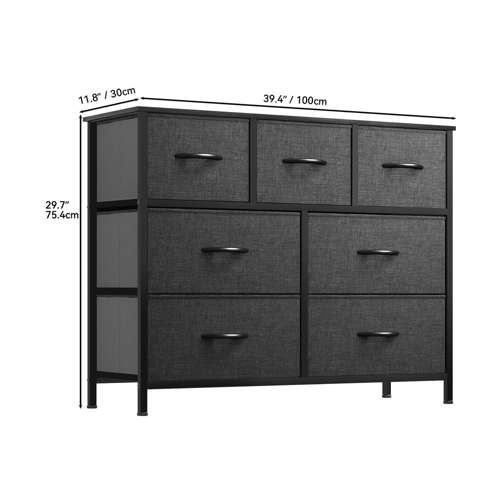 seattle-design Product Description taus784 Featured types you may look for 10 Drawer Dresser Light Gray 12 Drawer Dresser Light Gray 10 Drawer Dresser Brown 7 Drawer Dresser Brown 12 Drawer Dresser Dark Gray FREE SHIPPING 30 DAYS GUARANTEE PREMIUM QUALITY GOOD SERVICE Dresser Storage Tower 7 Drawers Bedroom Hallway Entryway Closet Chest of Drawers FEATURES Q UALITY CONSTRUCTION - Structured with a powerful metal frame and a durable MDF wooden top; Contains 7 detachable and foldable drawers with easy-to-pull wooden handles; Held up by 4 adjustable plastic legs that prevent scratches to your floor DURABLE FABRIC - The drawer's front side is constructed with premium cationic polyester fabric; The surrounding sides are covered by breathable, non-woven synthetic fabric; Allows for easy care - simply wipe clean with a damp cloth and let air dry EASY ASSEMBLY - Comes with detailed instructions and installation video for a hassle-free installation; All pieces and accessories are included in the package; Assembly only requires you to fasten a few screws VERSATILE COLOR SCHEME - Highlights a sleek, modern design combining premium black grey fabric drawers, a sturdy black metal frame, innovative crossbar design on the back, and a waterproof wooden tabletop; Perfect for living rooms, bedrooms, hallways, entryways, closets, nurseries, etc.; Fix it to a wall with screws LARGE STORAGE CAPACITY- 7-Drawer dresser conveniently organizes your clothes, scarves, socks, T-shirts, pants, sunglasses, books, small toys, etc.; Overall dimensions: 39.3" L x 11.8" W x 29.7" H; Large drawer dimensions: 18" L x 11" W x 8.4" H; Small drawer dimensions: 11.8" L x 11" W x 8.4" H Specifications: 7 Fabric Dressers Easy to Assemble Foldable Drawer Package Included: ● 7 -drawer storage chest ● Assembling hardware kits ● Instructions SHIPPING 1. The shipping rates listed are only for residential or commercial destinations in the continental 48 United States. All international sales will go through eBay Global Shipping Program.please ask us if there are any questions. 2. We only ship the item to the address that is sent to us at the time of checkout. Please verify the correct shipping address in your PayPal account before making your payment. If we ship your item to an old or invalid address and you are not able to locate the item, we are not responsible for shipping a replacement. 3. Currently, we do not ship to Hawaii, Alaska, Puerto Rico,APO/FPO/PO Boxes. 4. We use USPS & FedEx as shipping method. 5. Payments cleared before 12 PM PST, will be shipped on the same day. PAYMENT 1. We accept PayPal and all forms of credit card. 2. We will only ship to the confirmed Paypal shipping address given with the payment.responsible for shipping a replacement. 3. We do not offer local pick up service. RETURN 1. 30 days Money Back Guarantee. All of our products come with a return period of 30 days from the date of original delivery. 2. If any package that needs to be returned, please contact our customer service first to receive a RMA form. 3. All return items MUST be in brand new condition. 4. If you are not completely satisfied with your purchase or no longer need the item (if unopened) within the 30 days, we will assist you with a return for full refund minus a 20% processing fee. 5. If there is an issue of damage, please send us pictures through mail. Depending on the damage, we will take further action to solve the problem as soon as possible. 6. Please do not ship any goods to any address without our authorisation as it might lead to you not receiving your refund. [Please do not initiate a return without our authorisation as this could result in a delay in issuing your refund.] ABOUT US 1. Specialized in aftermarket auto parts since 2012, we source and work directly with professional manufacturers to provide the highest quality parts at the most economical prices. 2. We also has over 5 years of shipping experience with FedEx and USPS . Our Packing Quality is Guaranteed , Item Ship-ping is timely! Product Details Shipping 1.The shipping rates listed are only for residential or commercial destinations in the continental 48 United States. All international sales will go through eBay Global Shipping Program.please ask us if there are any questions. 2.We only ship the item to the address that is sent to us at the time of checkout. Please verify the correct shipping address in your PayPal account before making your payment. If we ship your item to an old or invalid address and you are not able to locate the item, we are not responsible for shipping a replacement. 3.Currently, we do not ship to Hawaii, Alaska, Puerto Rico,APO/FPO/PO Boxes. 4.We use USPS, UPS & FedEx as shipping method. 5.Payments cleared before 12 PM PST, will be shipped on the same day. Payment 1.We accept PayPal and all forms of credit card. 2.We will only ship to the confirmed Paypal shipping address given with the payment. 3.We do not offer local pick up service. Return 1.30 days Money Back Guarantee. 2.If any package that needs to be returned, please contact our customer service first to receive a RMA form. 3.All return items MUST be in brand new condition. About Us 1.Specialized in aftermarket auto parts since 2012, we source and work directly with professional manufacturers to provide the highest quality parts at the most economical prices. 2.We also has over 5 years of shipping experience with FedEx and USPS . Our Packing Quality is Guaranteed , Item Ship-ping is timely!
