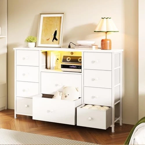 Menu 1. We require immediate payment. 2. We currently accept payment via eBay managed payments only. 3. Once payment is cleared, we will dispatch your shipment within 1-3 business days. Please refer to the "Shipping" tab for more information regarding shipping speed to your destination. Dresser for Bedroom with 10 Drawers, White Storage Organizer TV Stand for 55" TV with LED Lights and Sockets, Fabric Chest of Drawers with PU Finish for Kid Room, Entryway, Living Room, Hallway Product description Spacious Storage Space: This white dressing table comes with 10 fabric drawers, a spacious open shelf, and a wooden countertop to meet all your storage/exhibition needs. We offer two different sizes of drawers, customized for classified storage, which can hold messy toys, clothes, or blankets in the storage cabinet and keep the room clean and tidy. This TV stand is not limited to the bedroom, it seamlessly transitions to the living room, study, closet, and other areas. No matter w it is in your home, this 10 drawer dresser will help you add a touch of elegance and practicality to any environment TV Stand for up to 60" TVs: it's not just a dresser, but also a TV stand. Set this long dresser table as a beautiful TV stand for the bedroom. Its design can accommodate screens of 50 or 60 inches. Messy TV supplies and scattered DVDs can be hidden in deep drawers. Imagine setting up the LED lights on the TV stand and comfortably sitting on the sofa or bed with your family, enjoying movies. The TV stand with drawers creates a serene space for quality time and enhances the atmosp of a home theater Charging Station & LED Lights: This fabric dresser for bedroom is equipped with a built-in power socket and LED lights, placed in your home, creating a strong atmosp and making your home more fashionable and convenient. The color and brightness of the LED chests of drawers can be adjusted according to the needs of the scene. This storage organizer is equipped with a charging socket, which can easily meet your charging needs. You can easily charge your phone, TV, and other devices as needed Sturdy, Safe and Stable: Dimensions: 11.8"D x 47.2"W x 31.5"H. This drawer dresser is made of MDF & non-woven fabric with a thicken metal frame to ensure durability, and it includes an anti-tip kits to ensure stability and prevent falls. It also features a smooth PU surface for easy cleaning and maintenance. In addition, the adjustable feet adapt to a variety of floor surfaces and protect floors from scratches Easy to Assemble: No need to worry about installation issues! Assembly is fast and simple, including all necessary accessories and clear step-by-step instructions. Make it easy for you to assemble within 30 minutes. This TV stand is not only powerful in function, but also elegantly designed. The lines are simple, the appearance is modern, and it can seamlessly integrate into any home decoration, becoming a fashionable supplement to your living space PLEASE MESSAGE US IF YOU HAVE ANY OTHER QUESTIONS, AND MANY THANKS FOR READING ALL OF THIS. Copyright ©#. All Rights Reserved.