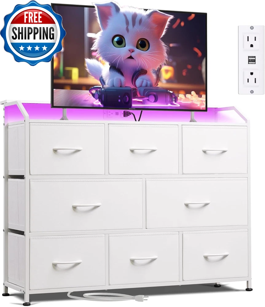 Dresser for Bedroom with 8 Drawers, Wide Fabric Dresser for Storage and Organiza