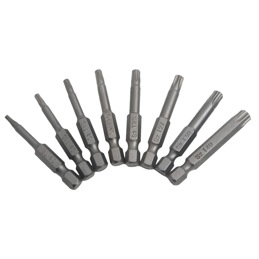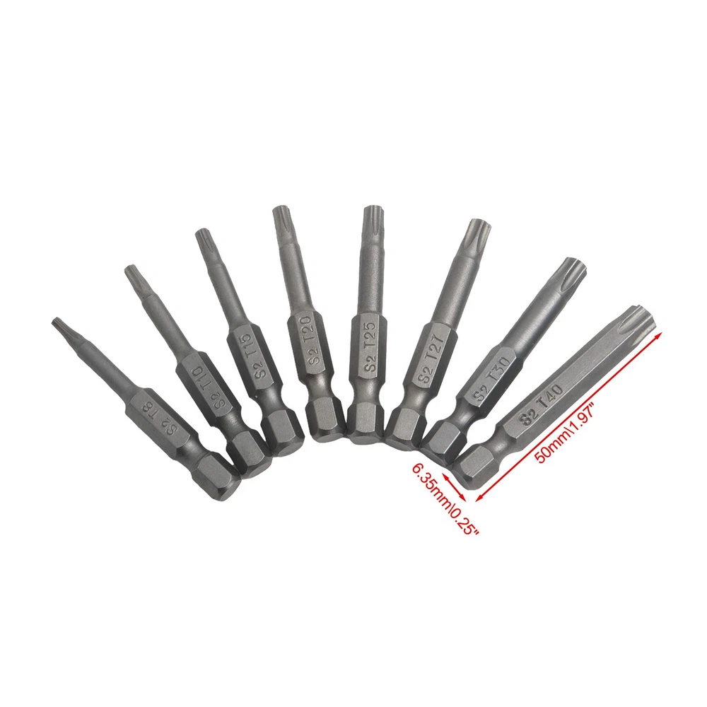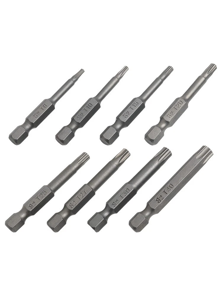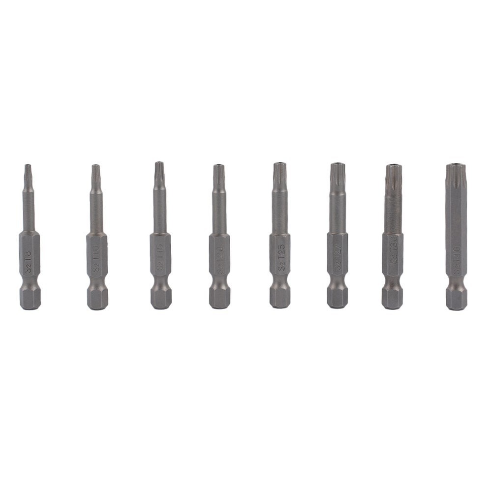 Product Description Features: *High quality, made of alloy steel, hardness up to 60HRC. *Special heat treatment, super hard wear-resisting, life is twice as long as ordinary screwdriver. *It is an industrial screwdriver widely used in industry and household. *Magnetic, can absorb screw, operate simple, quick . *Applicable for electric screwdriver, hand screwdrivers, electric drill, air drills . Specifications: *Material: Alloy Steel *Type of head: for Torx. *Type of shank: 6.35mm / 1/4 inch hex. *Size: T8, for T10, for T15, for T20, for T25, T27, for T30,T40 *Overall length: 50mm (Approx.) *Quantity: 8pcs *Note: All dimensions are hollow Package Contents: 8* for Torx Screwdriver Bit Note: 1.The real color of the item may be slightly different from the pictures shown on website caused by many factors such as brightness of your monitor and light brightness. 2.Please allow slight manual measurement deviation for the data. Payment Payment must be completed within 5 days. If you have any problems about payment, please contact us via ebay message. Delivery details We only ship to confirmed ebay Order addresses. Please comfirm that your Order address is in line with your shipping address. Please kindly note that the c ombined shipping is not provided because the shipping fee is calculated by weight. Also, the each additional item means exactly the the same color and size. It takes about 7 -15 working days to US; about 10-30 working days to other countries. Transit time may be a little delayed because of the bad weather and customs inspection . If you do not receive your item within 30 working days since payment finished, please contact us immediately for further assistance. Contact us We strive for 100% customer satisfaction! Positive Feedback is very important to us. If you have any questions, p lease feel free to contact us via "Ask seller a question" . We will reply your email within 24 working hours.