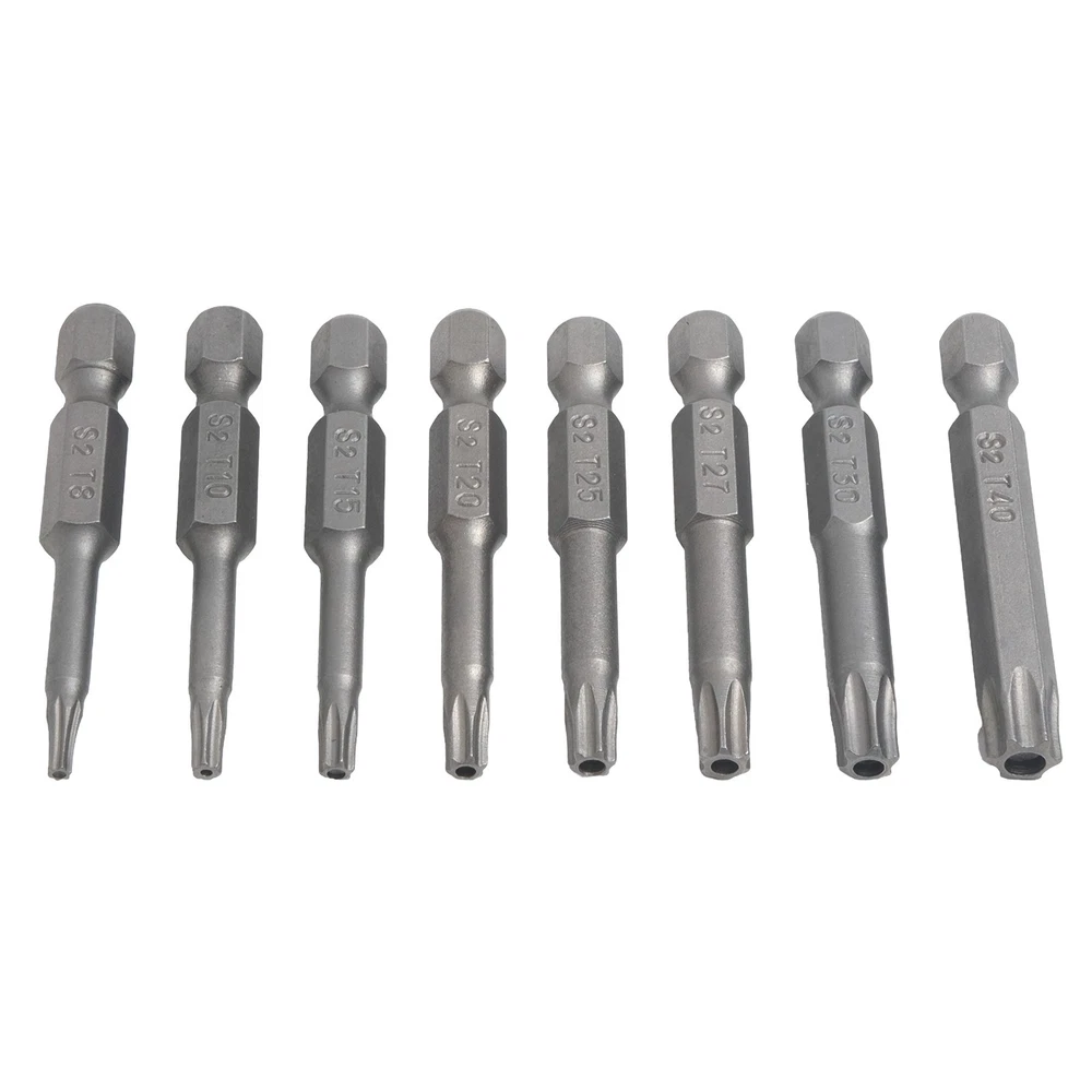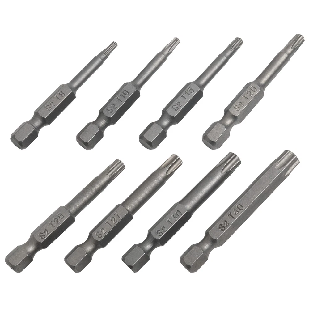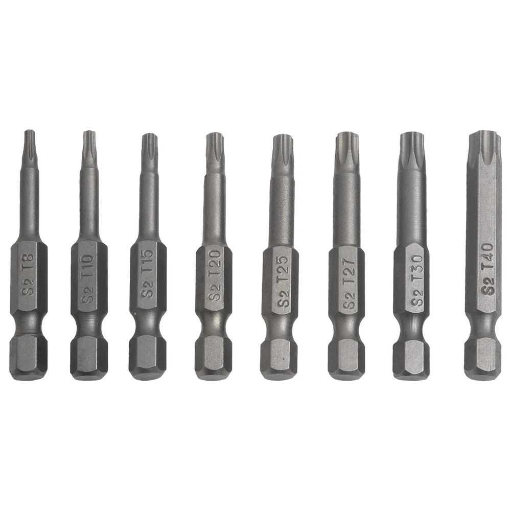 Product Description Features: *High quality, made of alloy steel, hardness up to 60HRC. *Special heat treatment, super hard wear-resisting, life is twice as long as ordinary screwdriver. *It is an industrial screwdriver widely used in industry and household. *Magnetic, can absorb screw, operate simple, quick . *Applicable for electric screwdriver, hand screwdrivers, electric drill, air drills . Specifications: *Material: Alloy Steel *Type of head: for Torx. *Type of shank: 6.35mm / 1/4 inch hex. *Size: T8, for T10, for T15, for T20, for T25, T27, for T30,T40 *Overall length: 50mm (Approx.) *Quantity: 8pcs *Note: All dimensions are hollow Package Contents: 8* for Torx Screwdriver Bit Note: 1.The real color of the item may be slightly different from the pictures shown on website caused by many factors such as brightness of your monitor and light brightness. 2.Please allow slight manual measurement deviation for the data. Payment Payment must be completed within 5 days. If you have any problems about payment, please contact us via ebay message. Delivery details We only ship to confirmed ebay Order addresses. Please comfirm that your Order address is in line with your shipping address. Please kindly note that the c ombined shipping is not provided because the shipping fee is calculated by weight. Also, the each additional item means exactly the the same color and size. It takes about 7 -15 working days to US; about 10-30 working days to other countries. Transit time may be a little delayed because of the bad weather and customs inspection . If you do not receive your item within 30 working days since payment finished, please contact us immediately for further assistance. Contact us We strive for 100% customer satisfaction! Positive Feedback is very important to us. If you have any questions, p lease feel free to contact us via "Ask seller a question" . We will reply your email within 24 working hours.